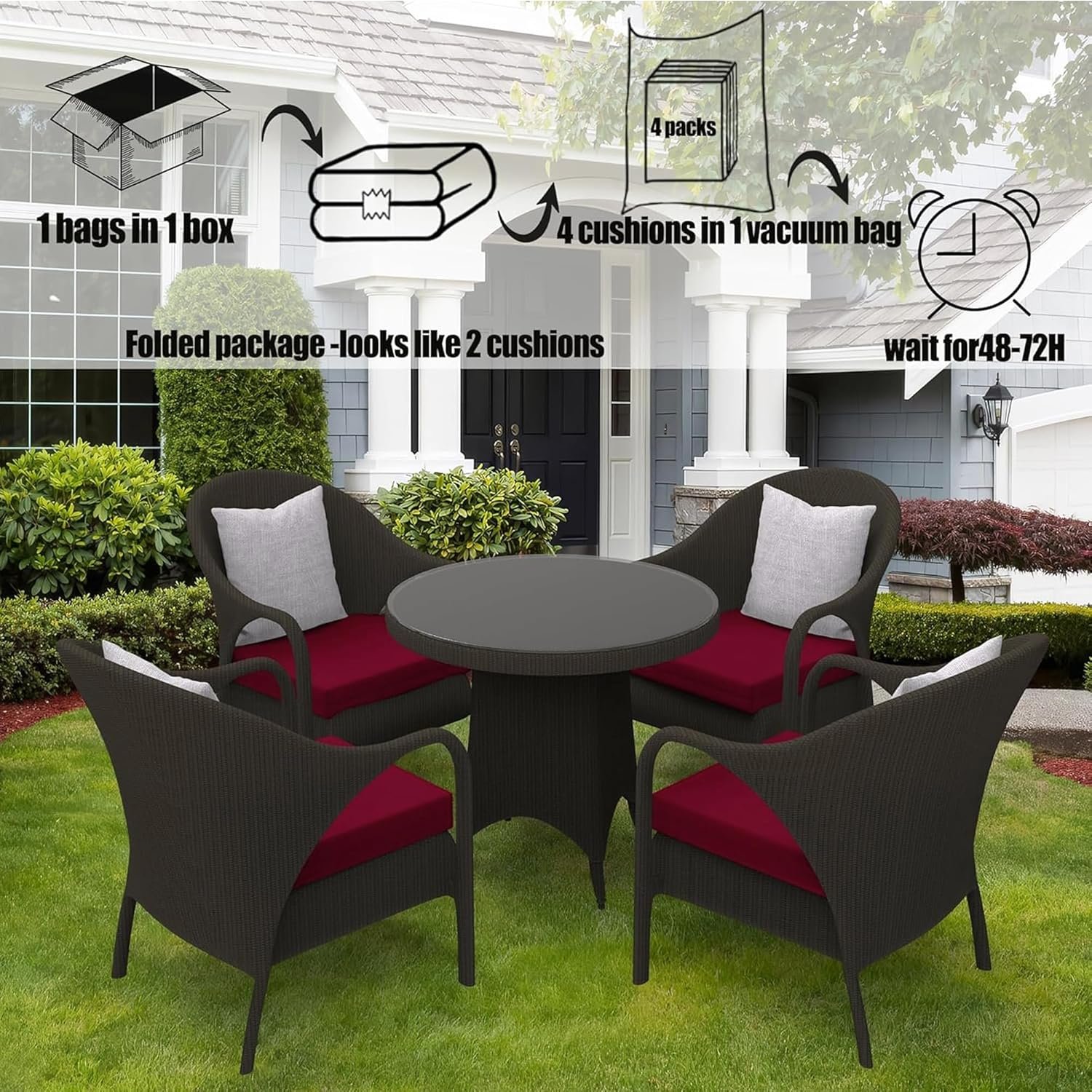 VACUUM BAG – You will receive the cushions in a vacuum bag. To ensure that the cushions can rebound perfectly, it is best to wait for 48-72 hours, If you have any questions about the product, please feel free to contact us.