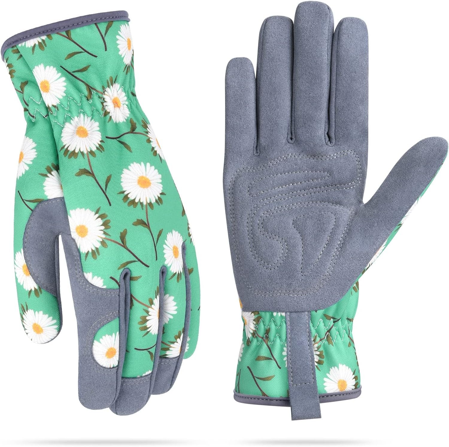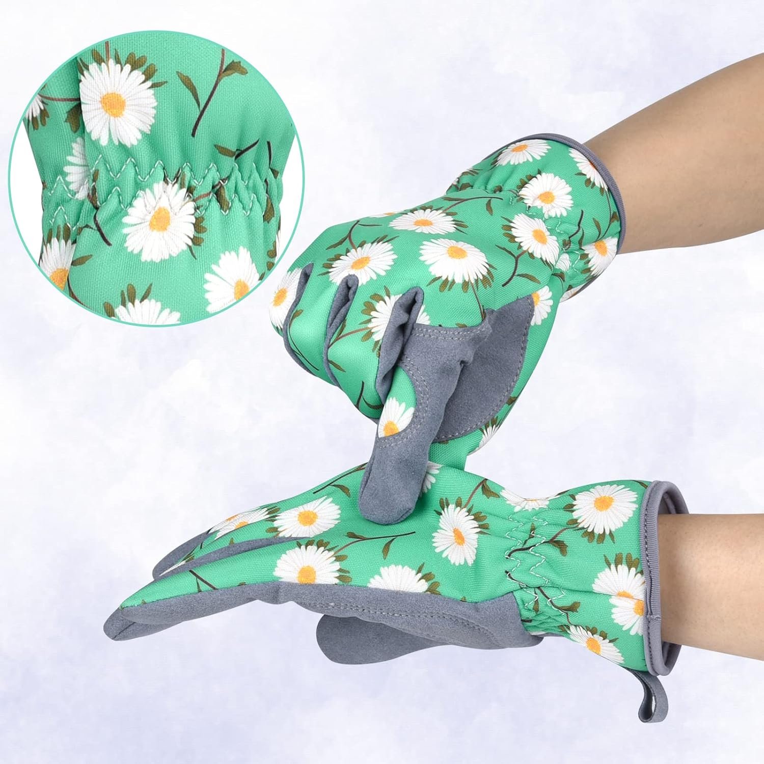 Womens Gardening Weeding Working Gloves, Leather Garden Glove for Women Thorn Proof No Stab for Digging, Planting,Pruning