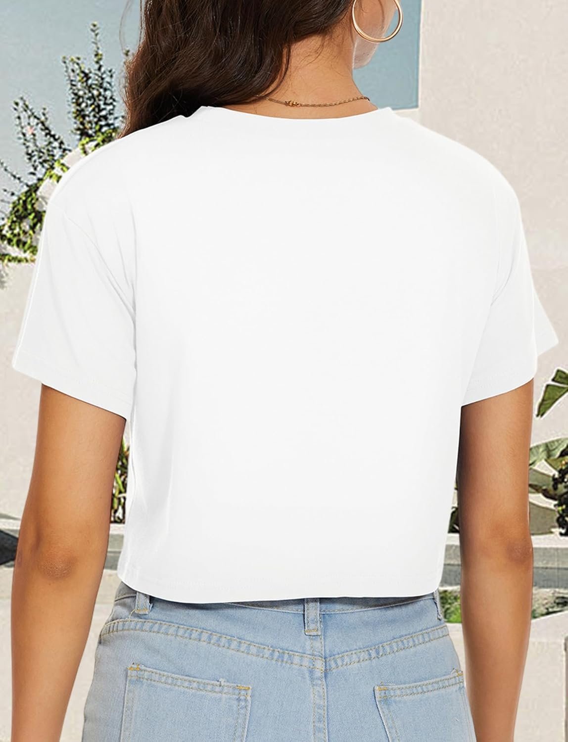 Summer Crop Tops for Women Short Sleeve Round Neck T-shirts