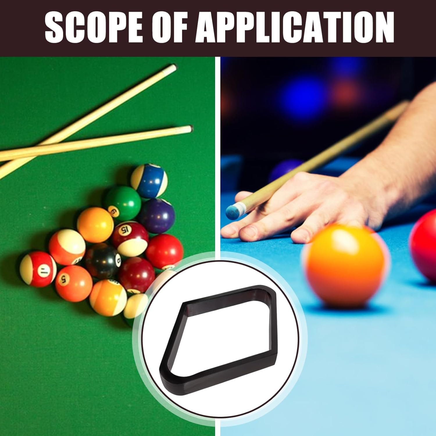 Pool table balls rack–billiard accessories are supposed to be suitable for all age, regardless of age, easy for everyone to use, our product just suit these requirements,billiards rack