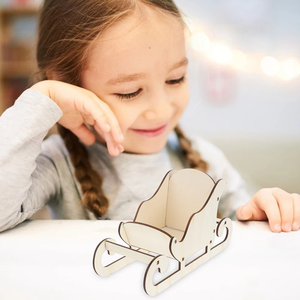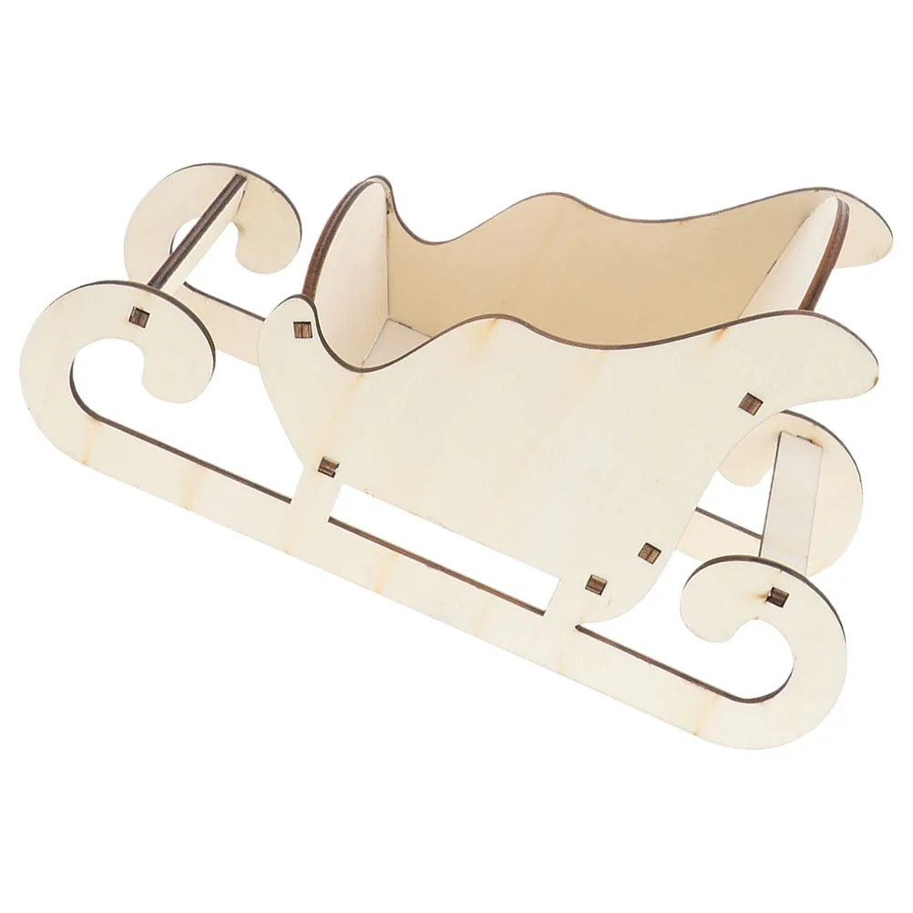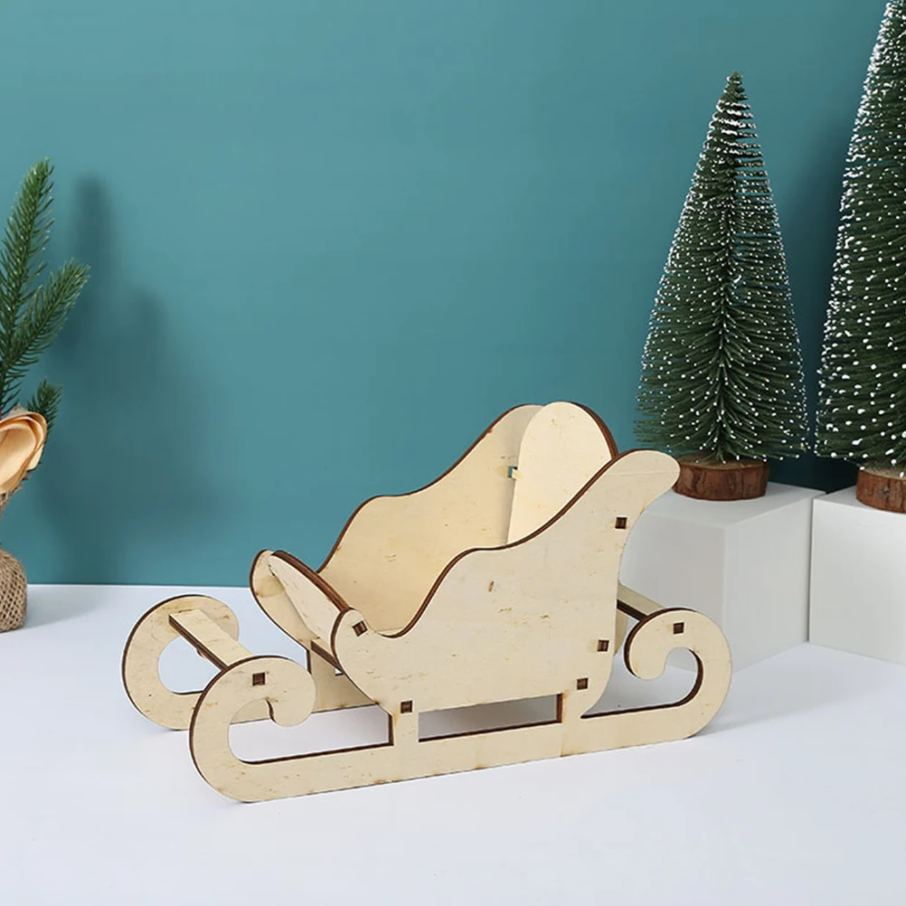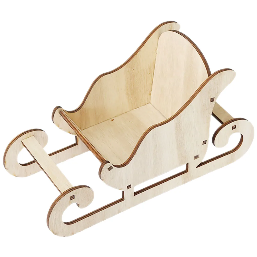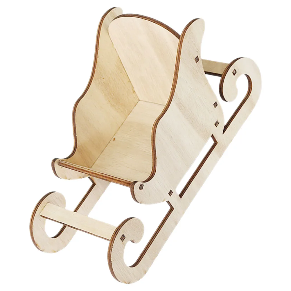 Wooden Ornament Christmas Holiday Decor Desktop Sleigh Model Miniature Craft Xmas Party Decoration Tabletop Sleigh Photo Prop