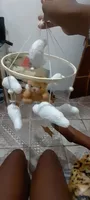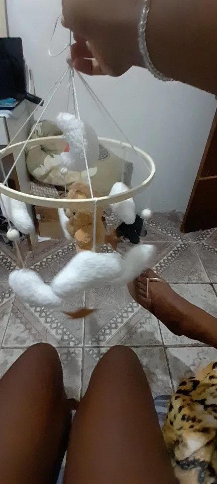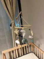 Really sweet mobile, just like in the picture. He is gentle so if there are older brothers at home, be careful hahaha.. The top rod like a crane can be moved from side to side. In short, really comfortable, lightweight. I really liked it and the baby is curious 🙂