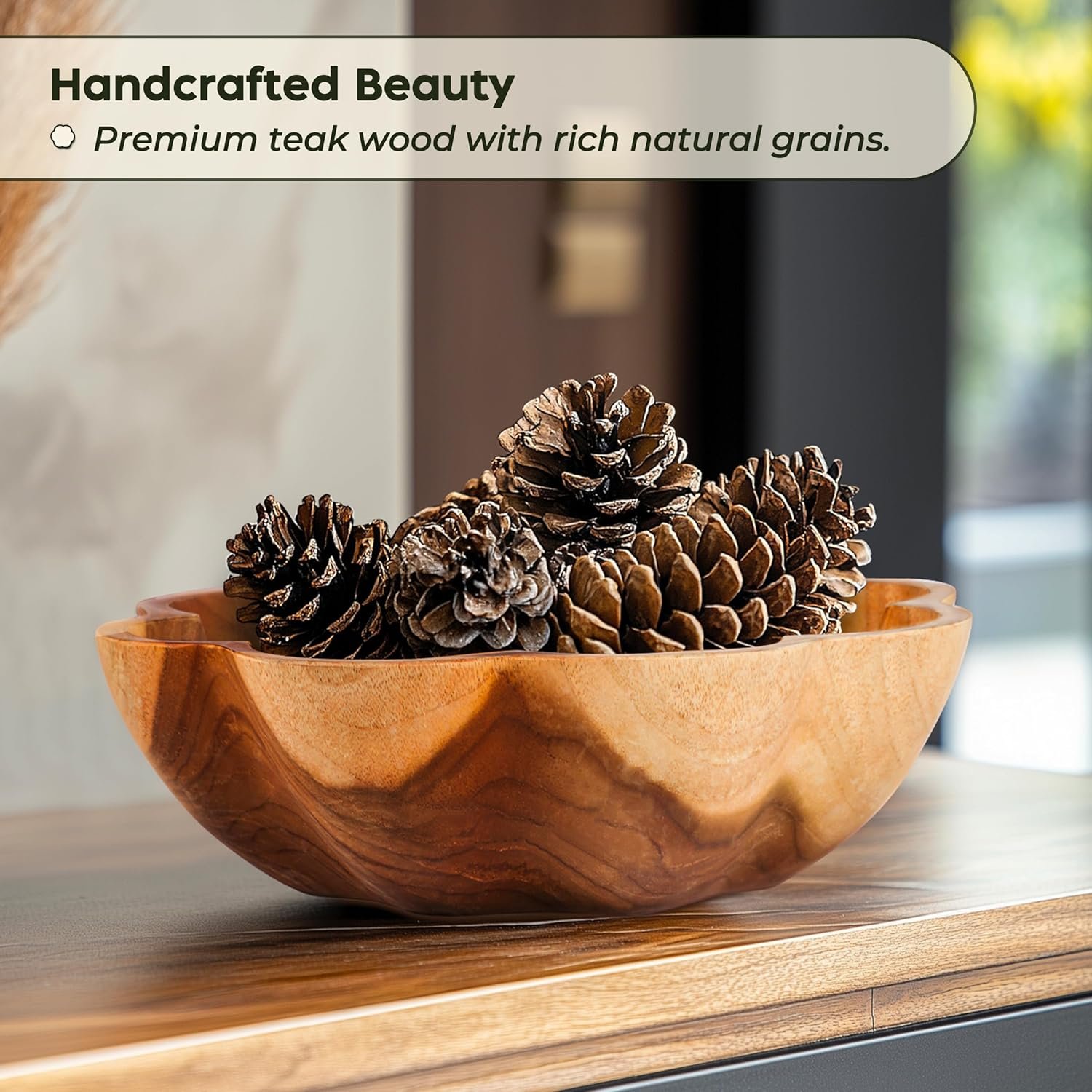 Sustainably Sourced — This decorative wood bowl is carved from responsibly harvested teak roots, making it a stunning yet ethical choice among wood bowls decorative collections.