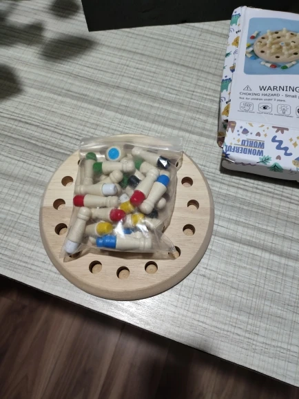 KIDS EDUCATIONAL STEM TOYS: Fine wooden memory game with solid wooden board, dice and 24 wooden peg pieces in six different colours (four pieces in each colour). For children over 3 years old, help to improve children’s awareness of color, logical ability, and curiosity. Kids can have fun with their friends by using this chess game set, parents can use it to play parent-child games to bring them closer together.