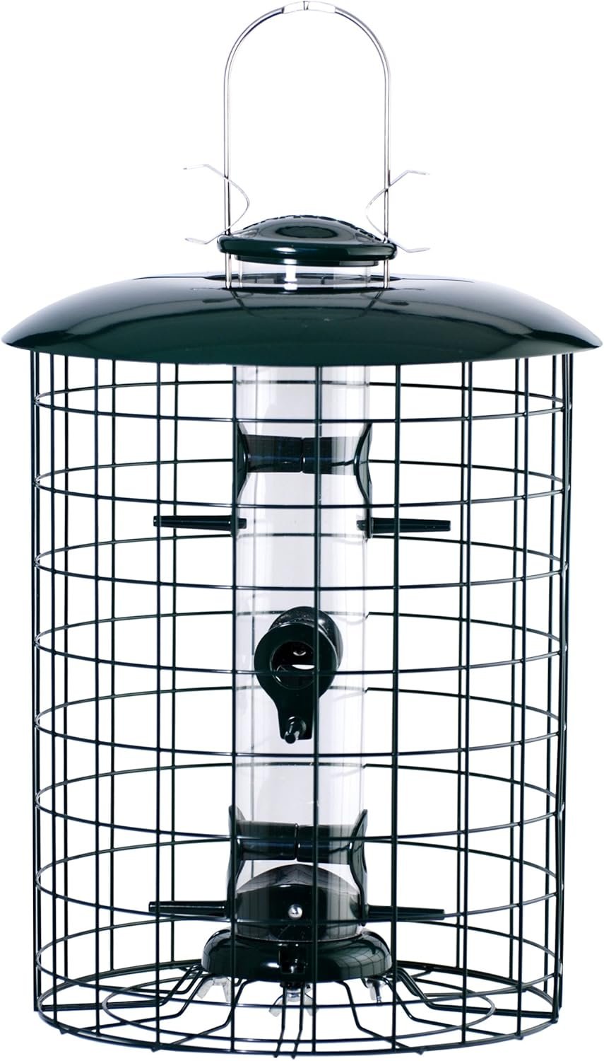 Wood link Squirrel Resistant caged tube feeder features steel construction