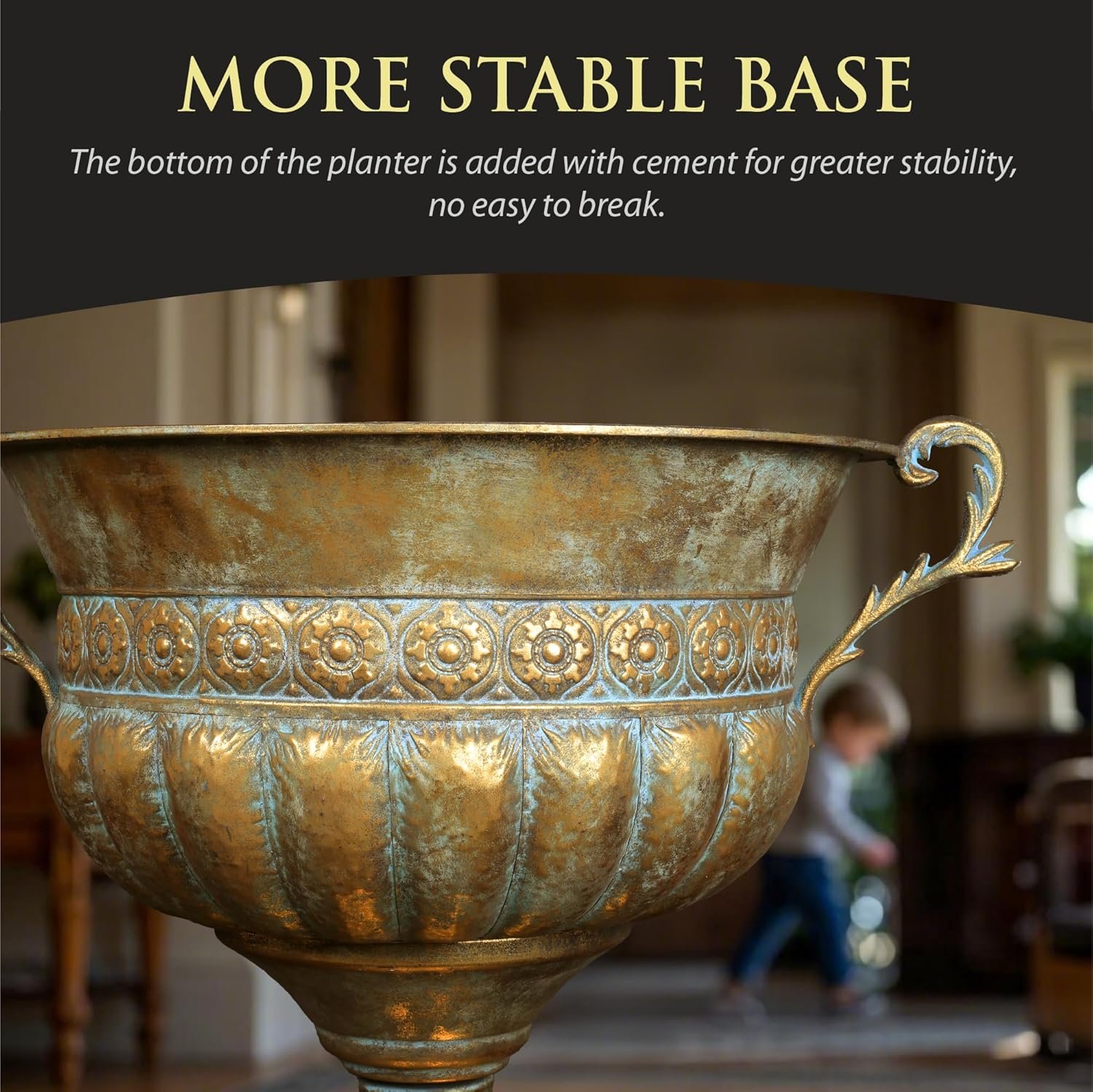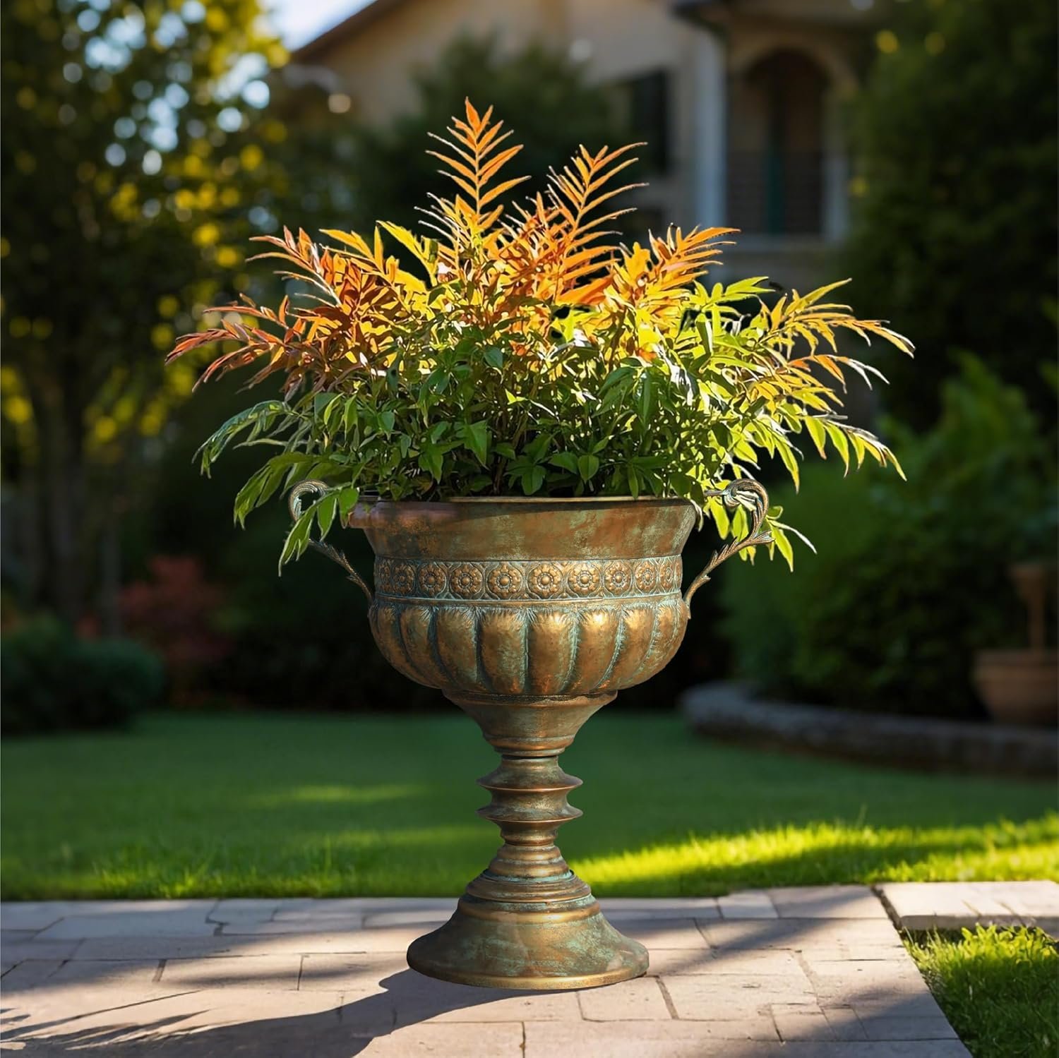 Elegant Antique Gold Design: The planter features an aged finish with a luxurious, classic urn shape, adding a touch of timeless elegance to your indoor or outdoor spaces.