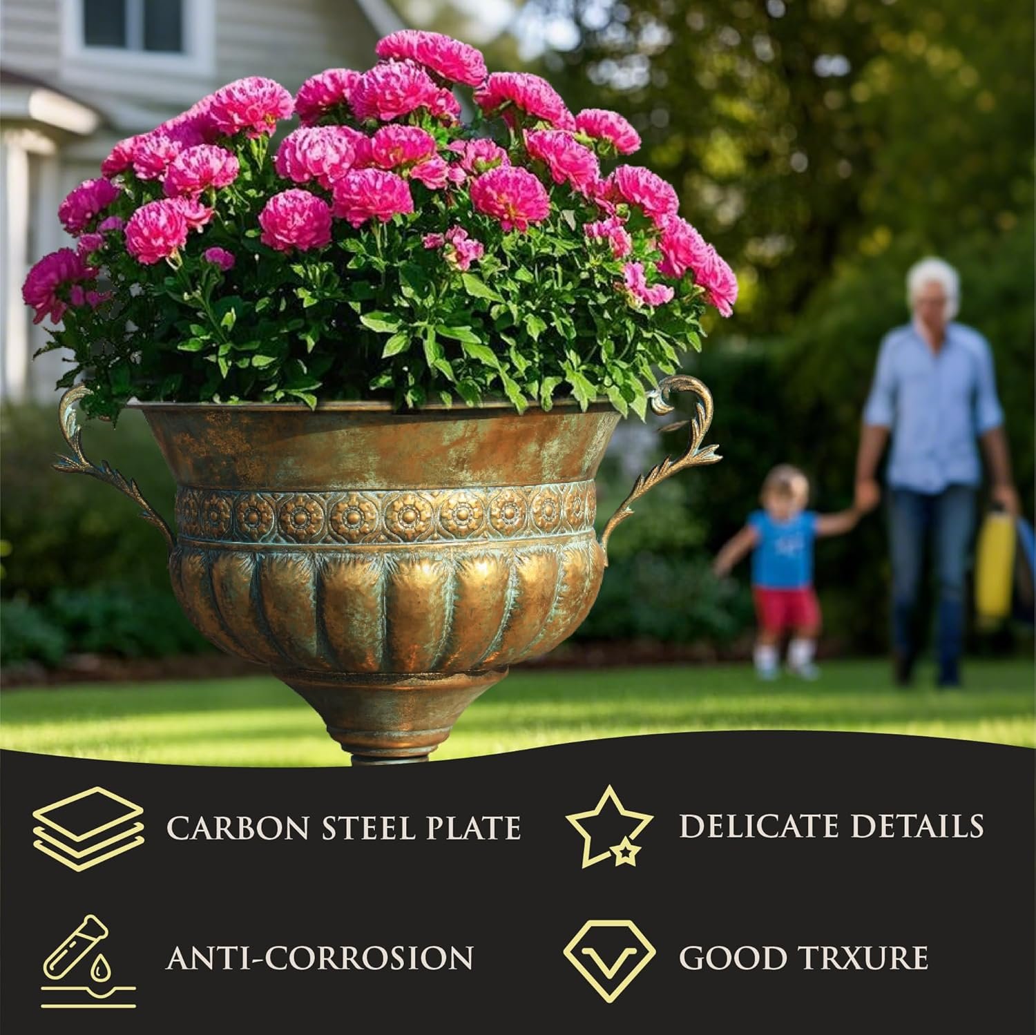 Durable Iron Construction: Made from high-quality iron, this planter is built to last, offering durability for both indoor and outdoor environments. Ideal for gardens, patios, front porches, and entryways.