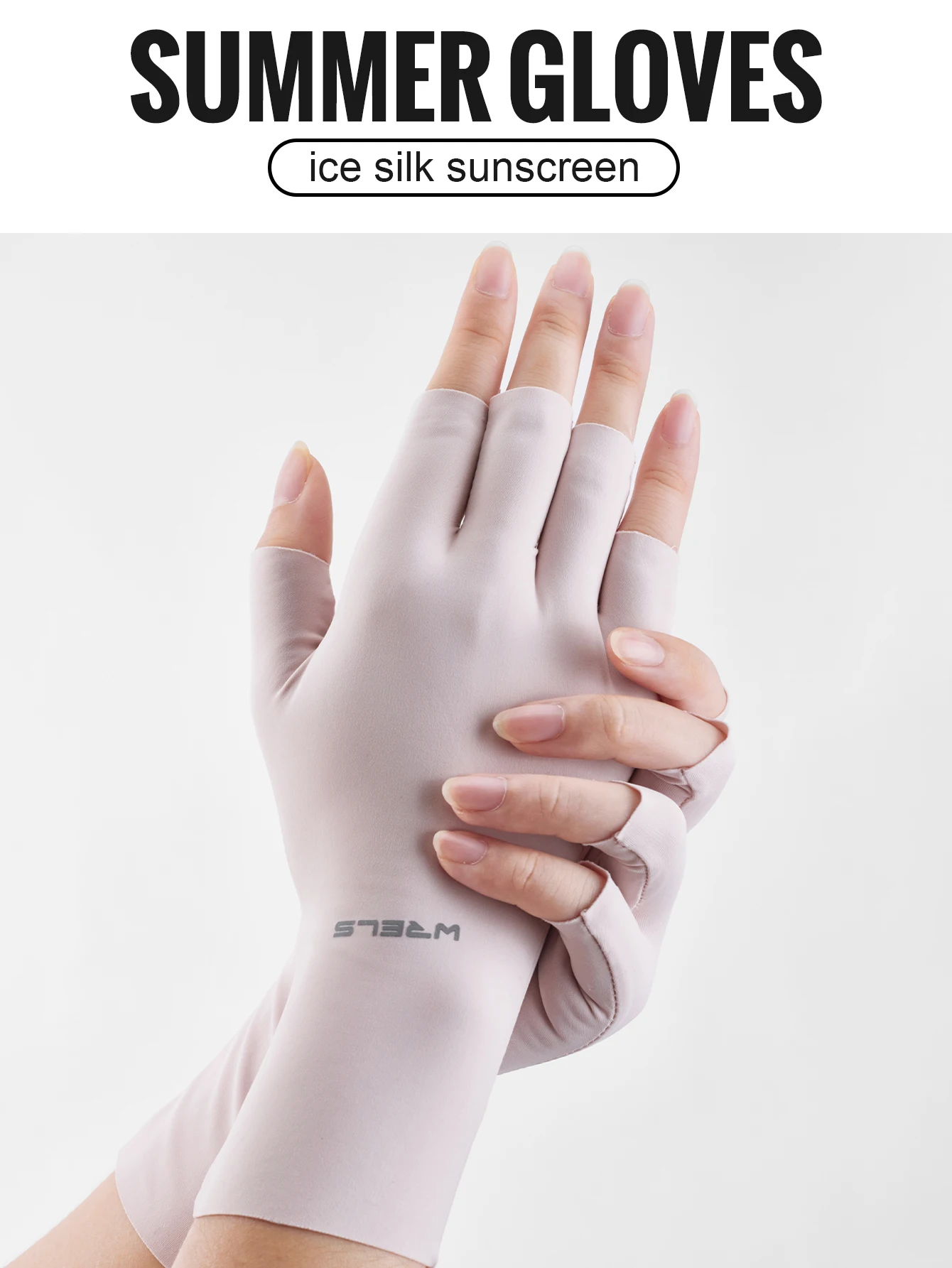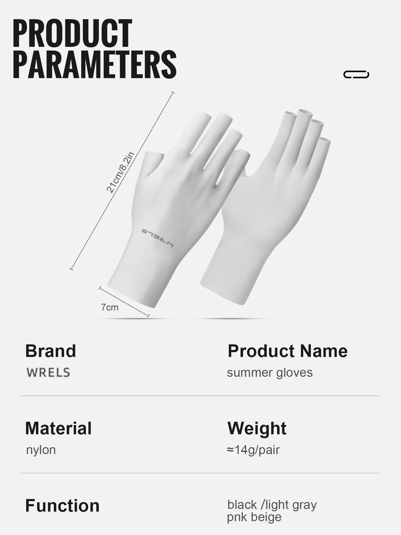 WRELS Fingerless Gloves Summer Sunscreen UV Protection Ice Silk Gloves Are UV Resistant Non Slip UPF50+ Fingerless Gloves