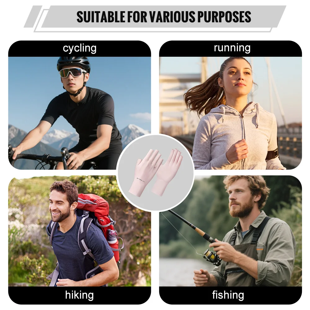 WRELS Fingerless Gloves Summer Sunscreen UV Protection Ice Silk Gloves Are UV Resistant Non Slip UPF50+ Fingerless Gloves