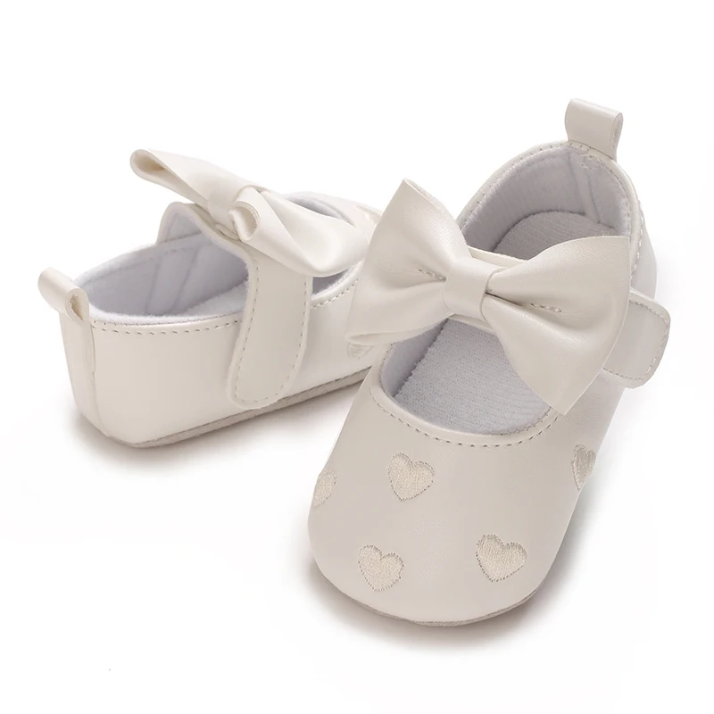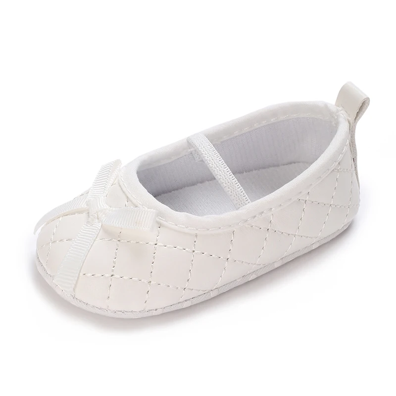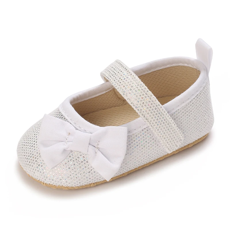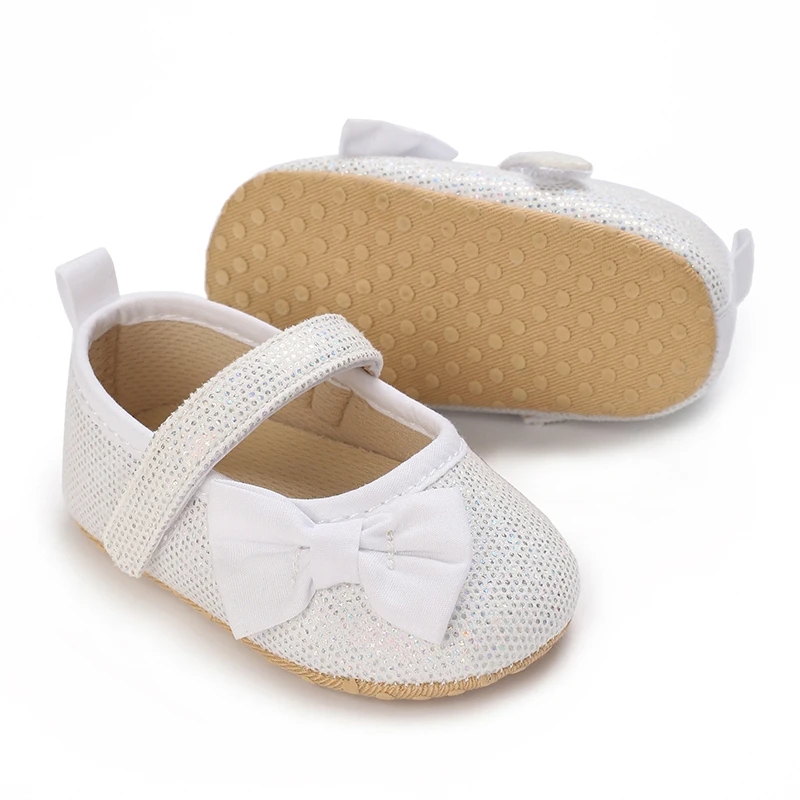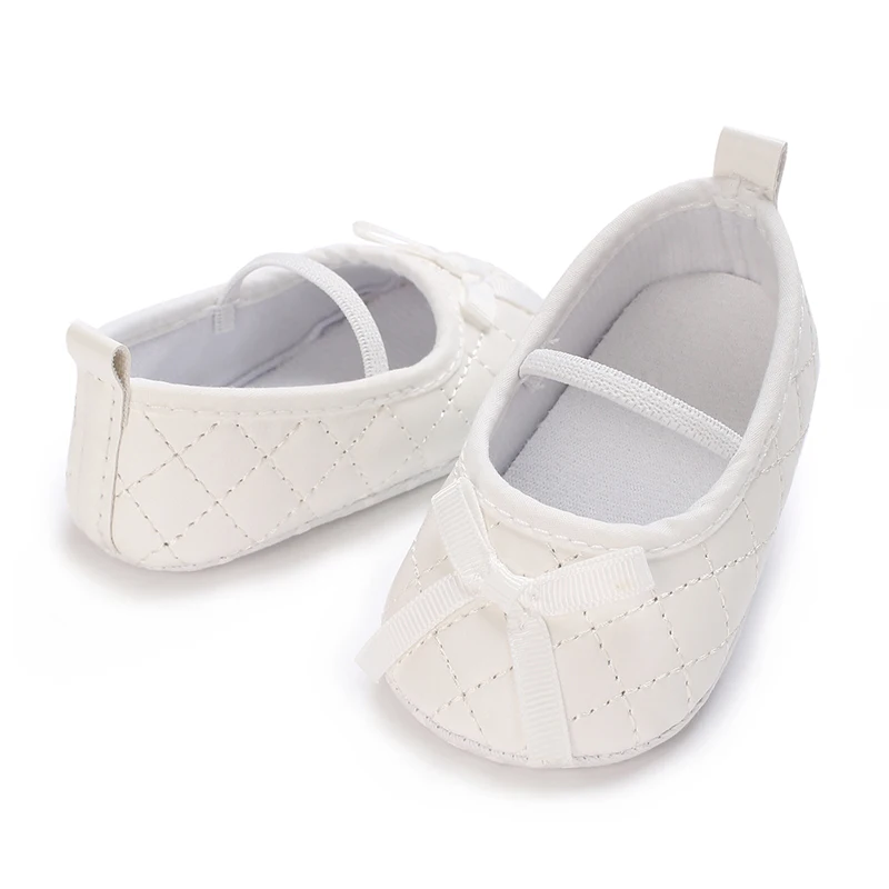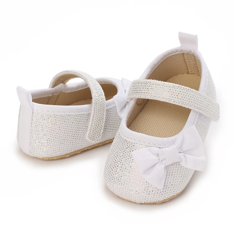 Wtite Baby Princess Shoes Infant Bow Garden Shoes Versatile Non-Slip Rubber Soft Sole Flat PU First Walker Newborn Manor Style