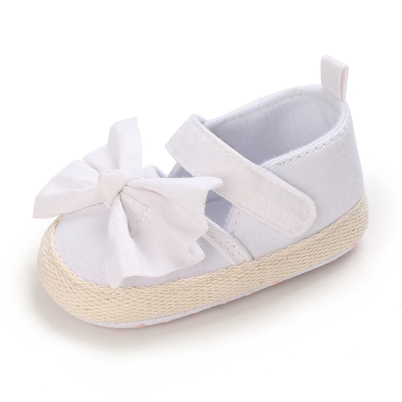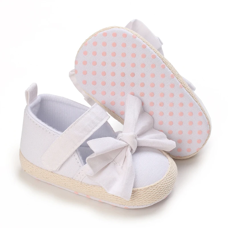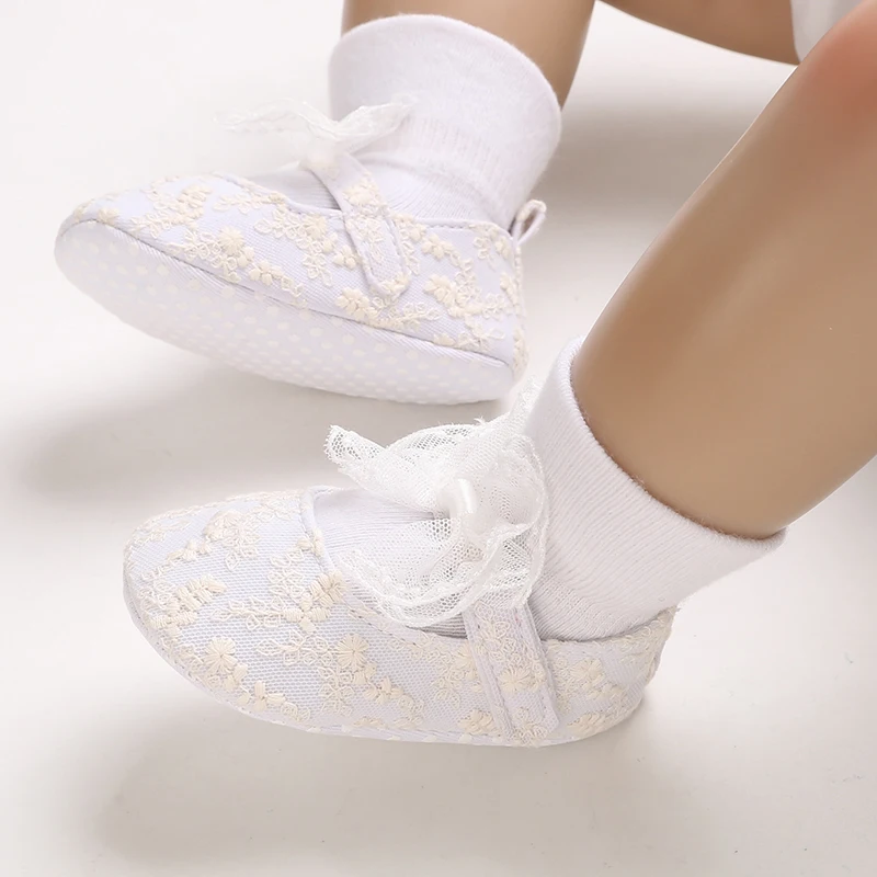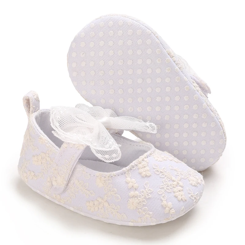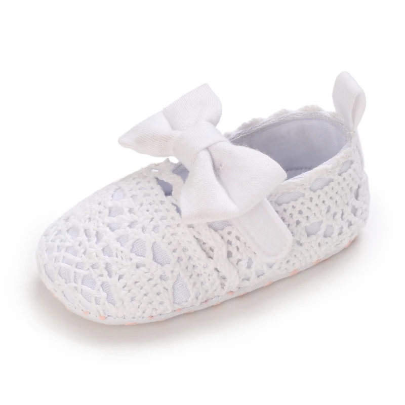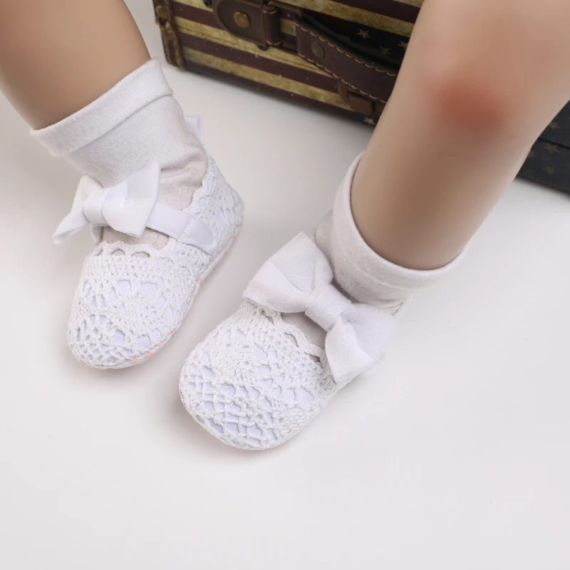 Wtite Baby Princess Shoes Infant Bow Garden Shoes Versatile Non-Slip Rubber Soft Sole Flat PU First Walker Newborn Manor Style