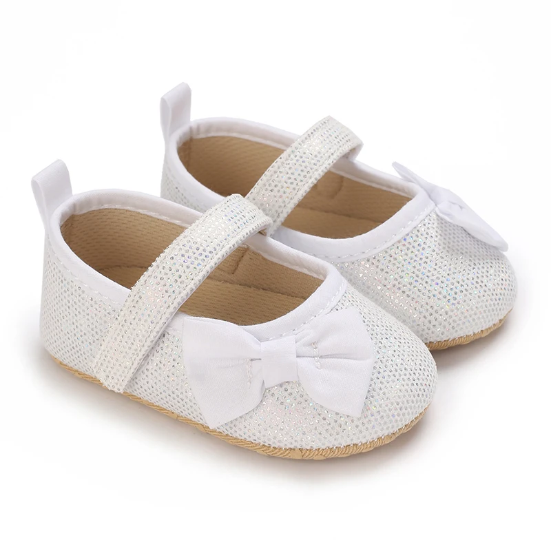 1 review for Wtite Baby Princess Shoes Infant Bow Garden Shoes Versatile Non-Slip Rubber Soft Sole Flat PU First Walker Newborn Manor Style
