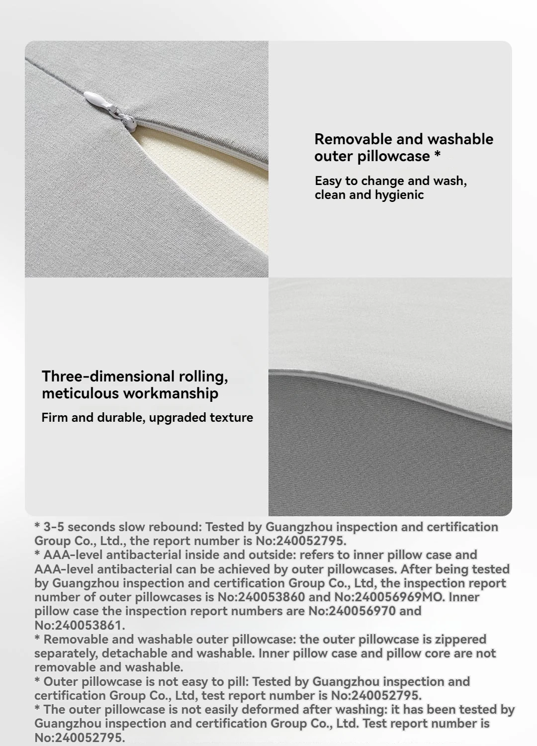 Outer pillowcase cover fabric : 65% cotton, 35% polyester fiber