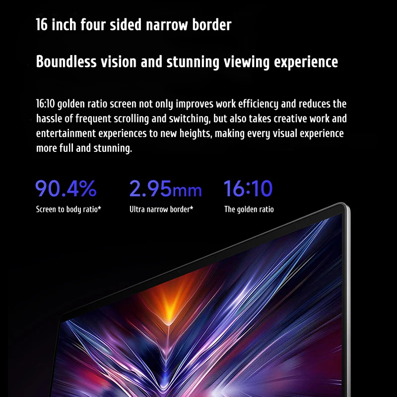 16:10 golden ratio screen not only improves work efficiency and reduces the hassle of frequent scrolling and switching, but also takes creative work and entertainment experiences to new heights, making every visual experience more full and stunning.
