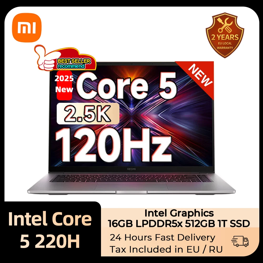 Xiaomi REDMI Book 16 2025 Laptop Intel Core 5 Processor 220H Intel Graphics 16G/32G RAM 1TB SSD 16-inch Screen Notebook Slim PC