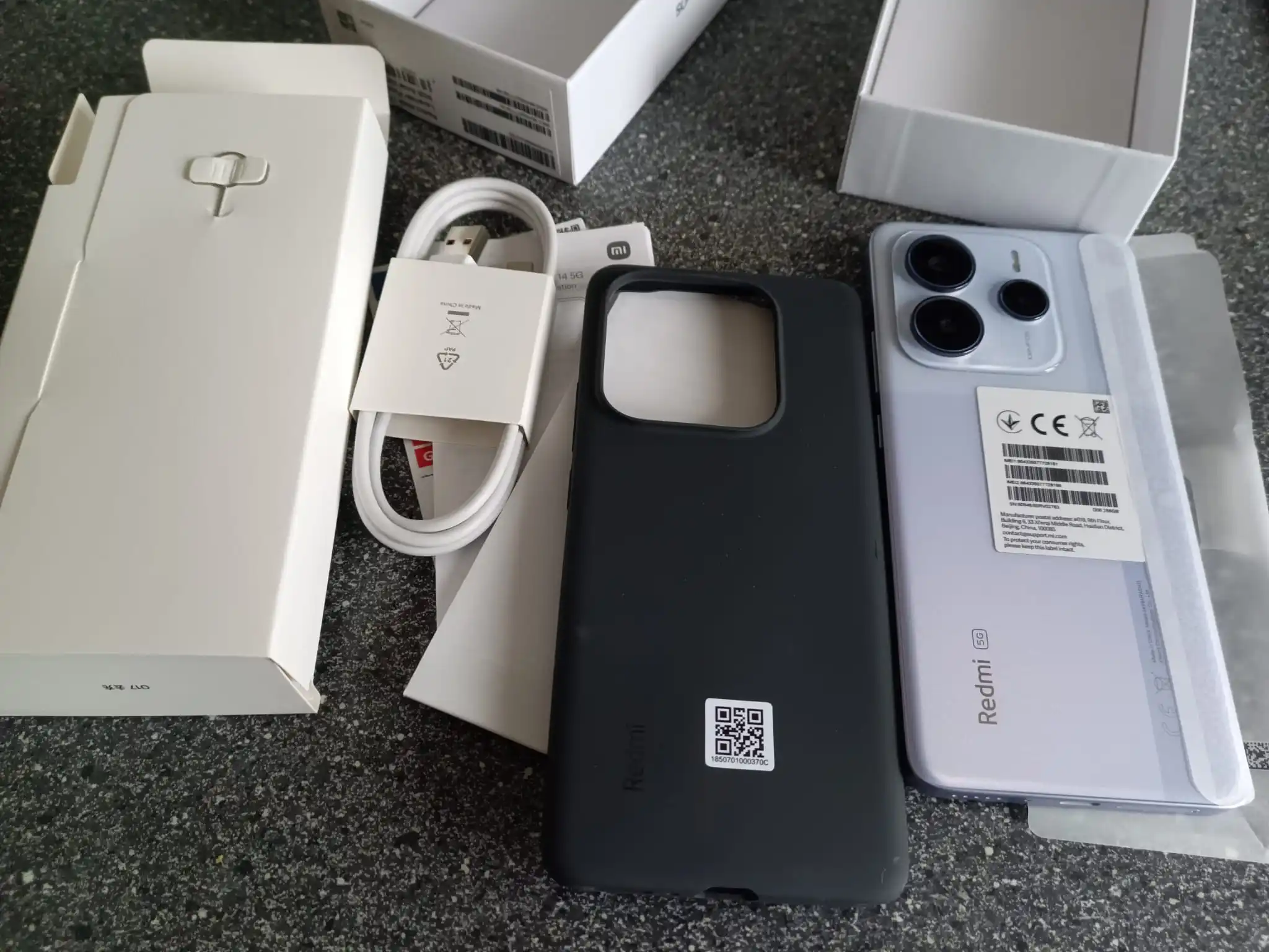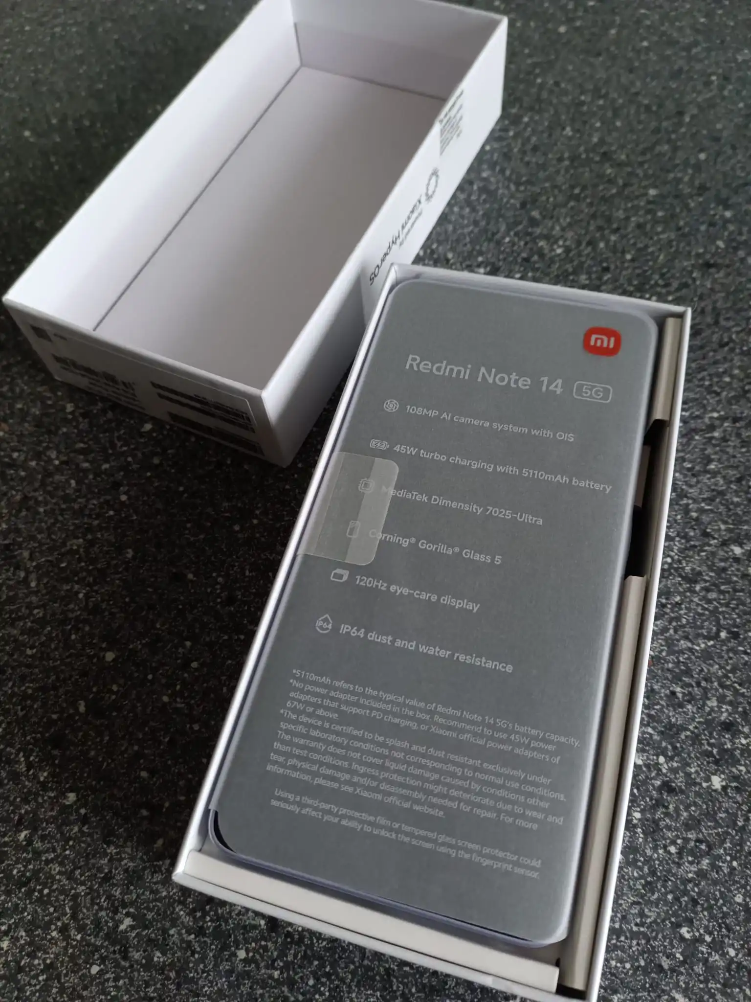 Package Contents ———– Redmi Note 14 5G | USB Type-C Cable | SIM map Extractor | Protective case | Quick Start Guide | Warranty map