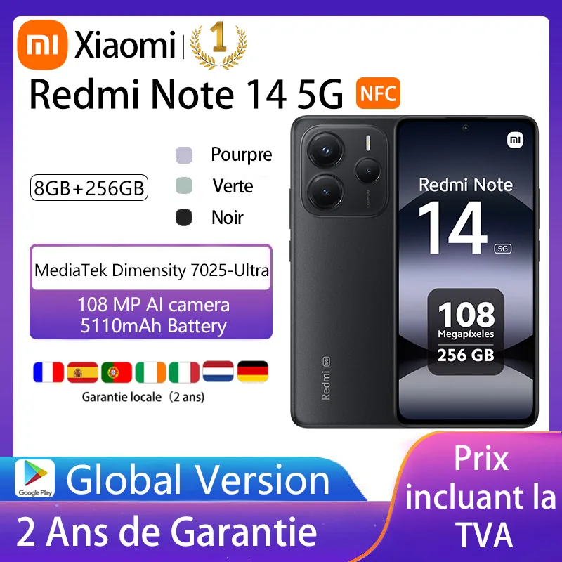14 reviews for Xiaomi Redmi Note 14 5G, NFC, smartphone, MediaTek Dimensity 7025-Ultra, screen AMOLED, inches, 120Hz, Al 108 MP camera system with OlS,Charger Not Included