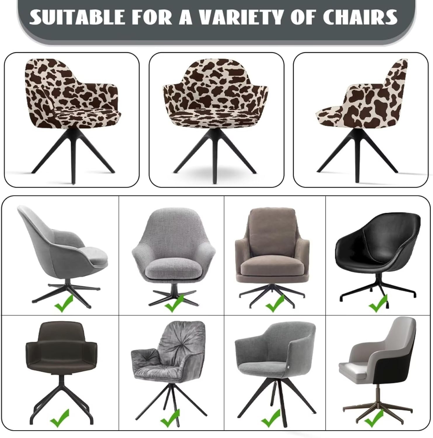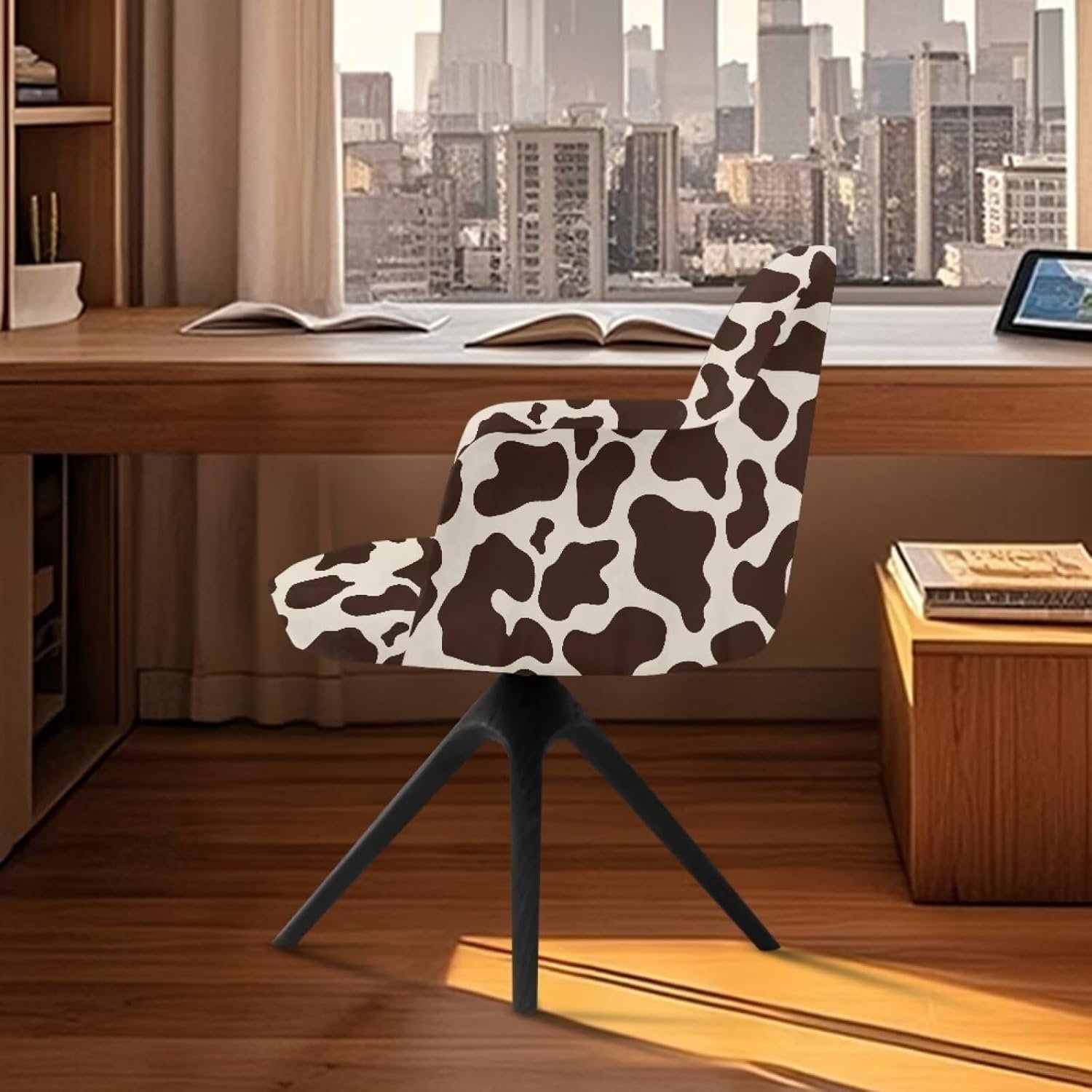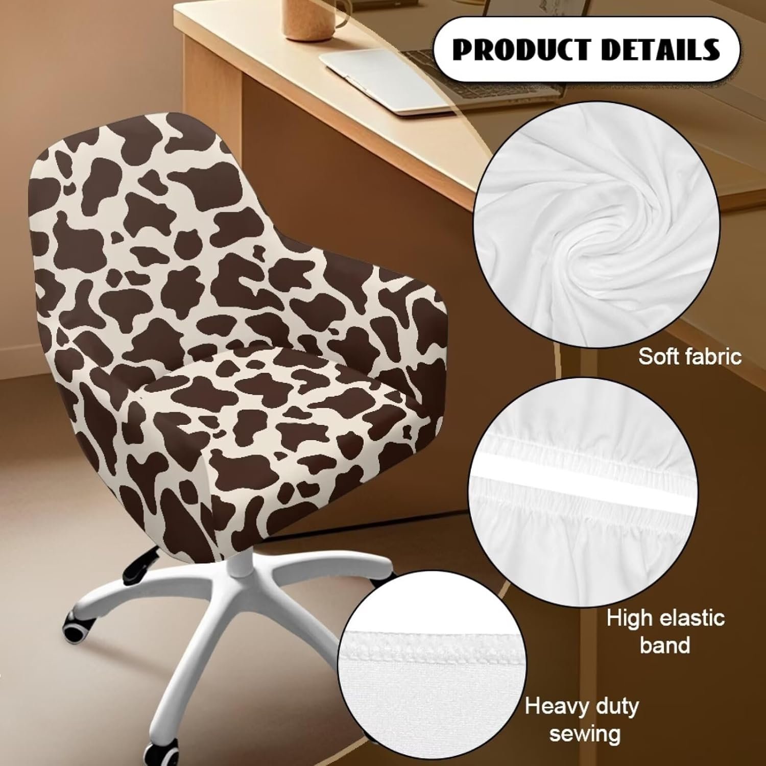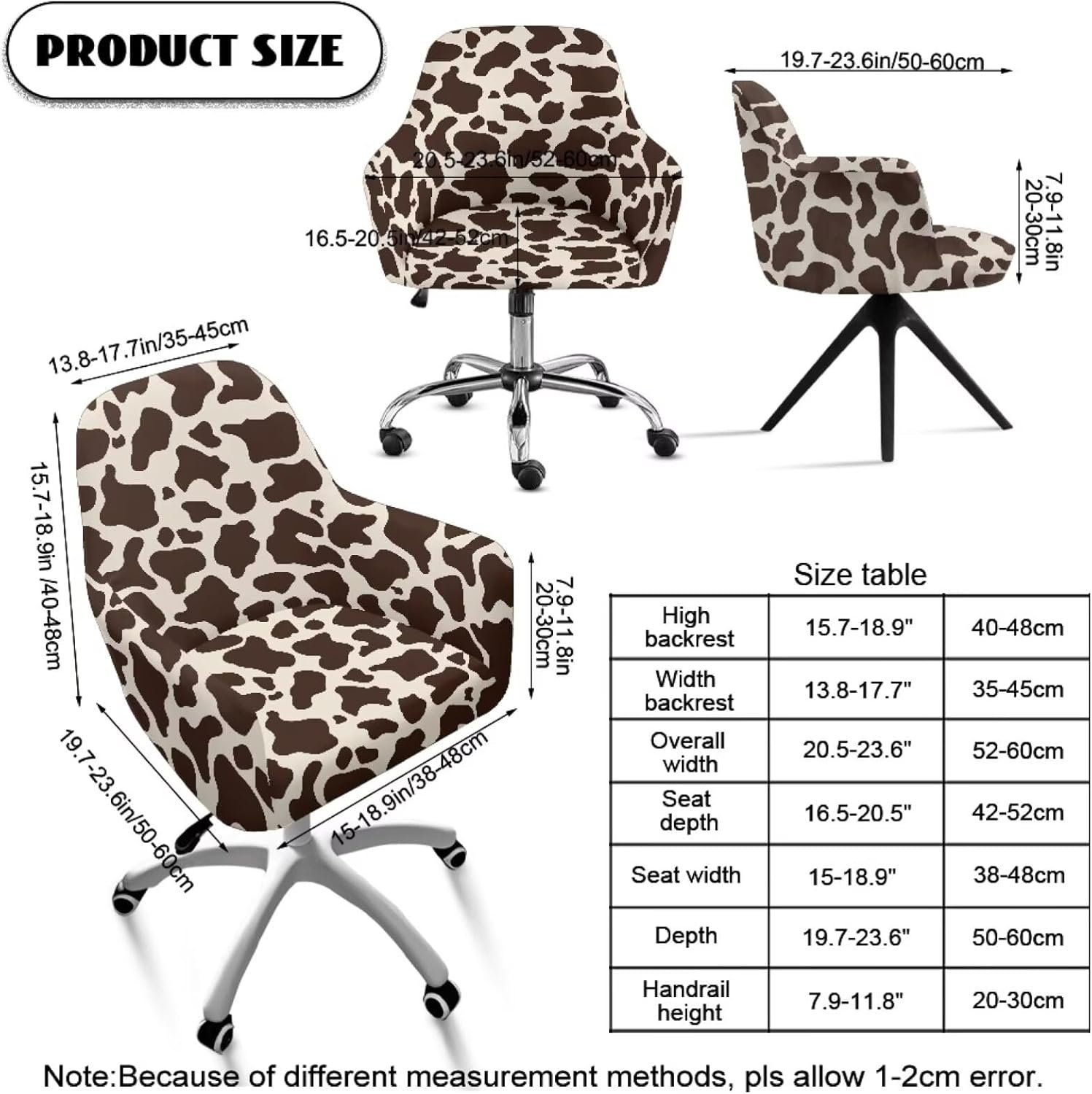 Xoenoiee Brown Cowhide Pattern Swivel Office Armrest Chair Covers Stretch Dining Chair Cover, Mid-Back Desk Chair Slipcover Removable Accent Armchair Protector