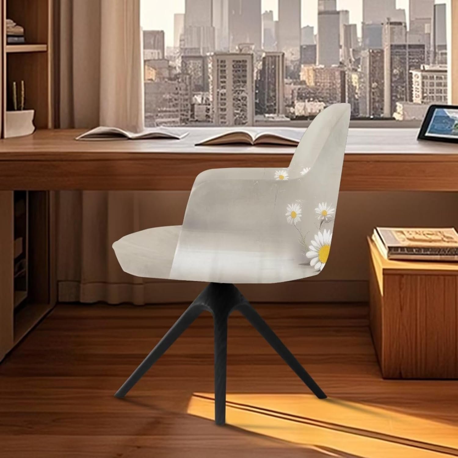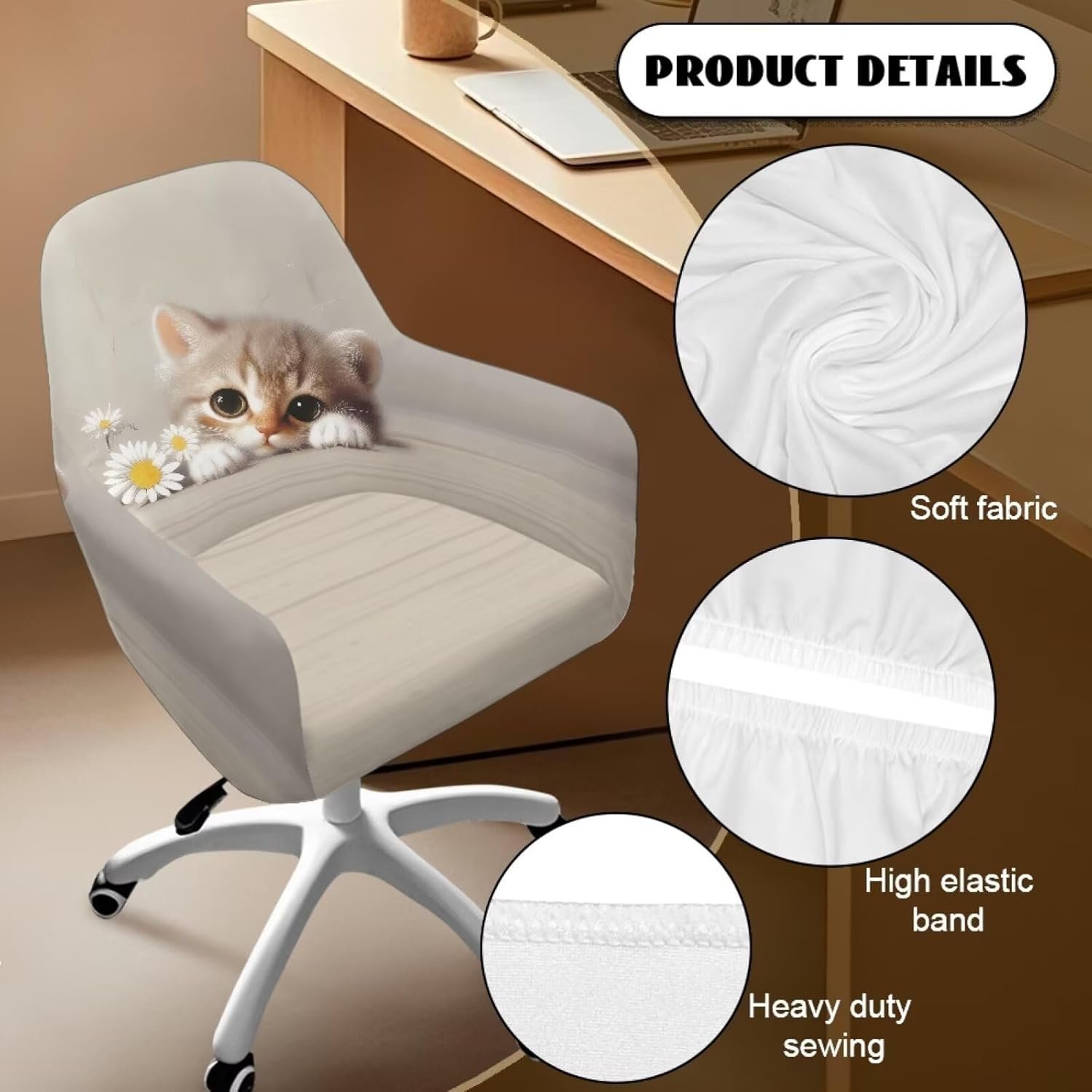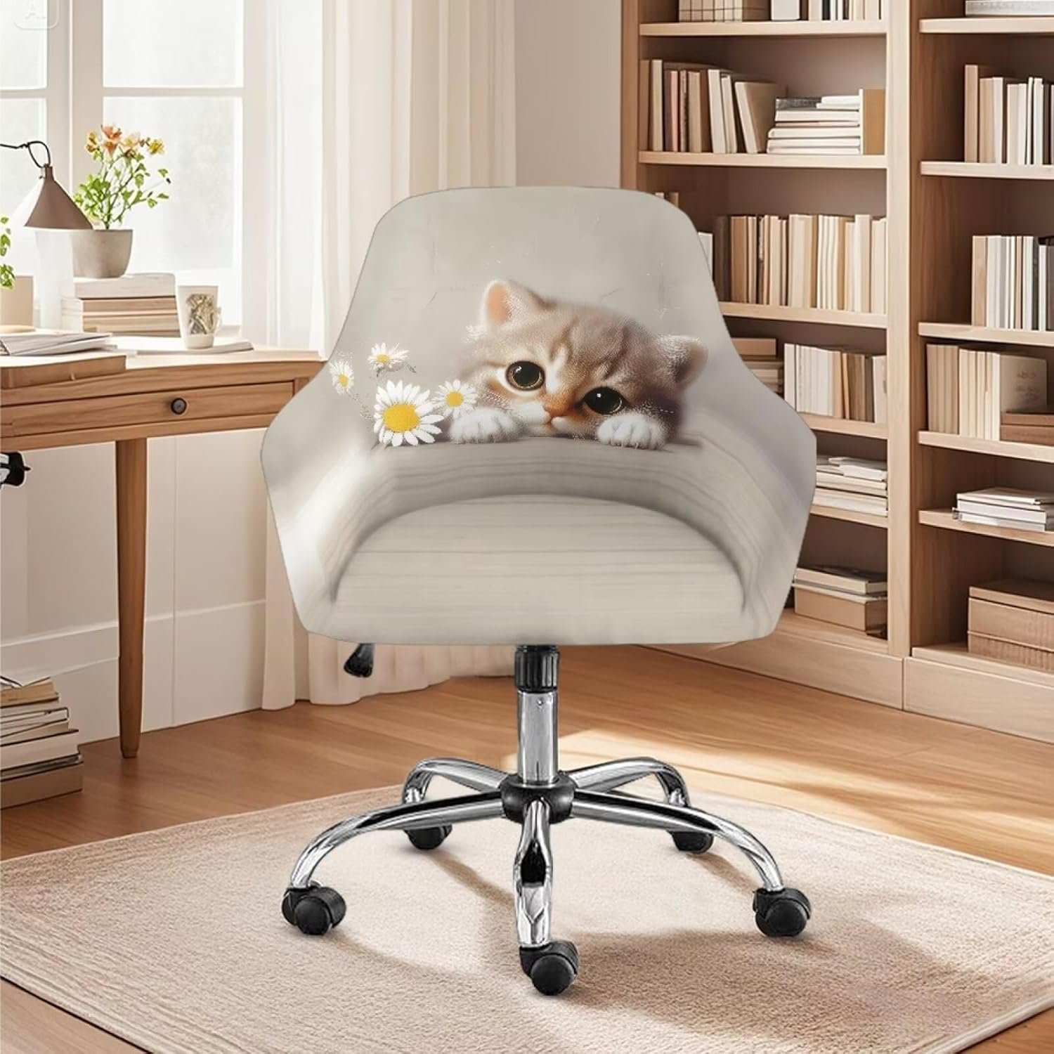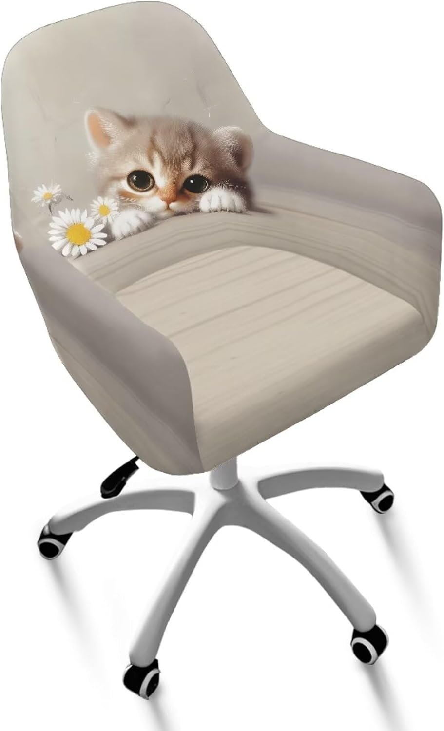 Xoenoiee Cat Daisy Floral Pattern Swivel Office Armrest Chair Covers Stretch Dining Chair Cover, Mid-Back Desk Chair Slipcover Removable Accent Armchair Protector