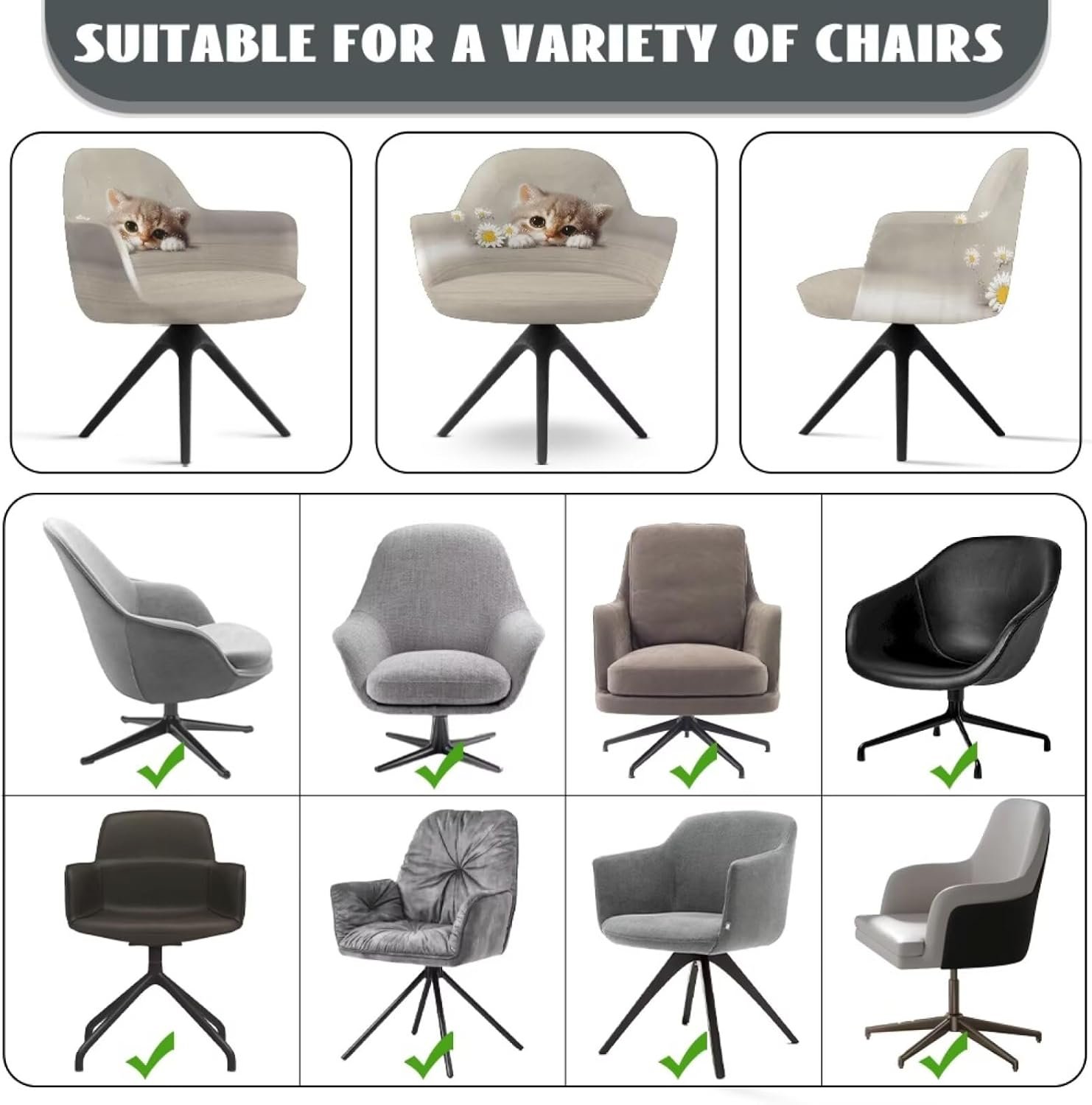 Enjoy universal versatility! It seamlessly fits most office chairs, desk chairs, computer chairs, and dining chairs featuring a mid-back or curved back design with armrests. Perfect for revitalizing spaces in your living room, home office, dining room, or study.