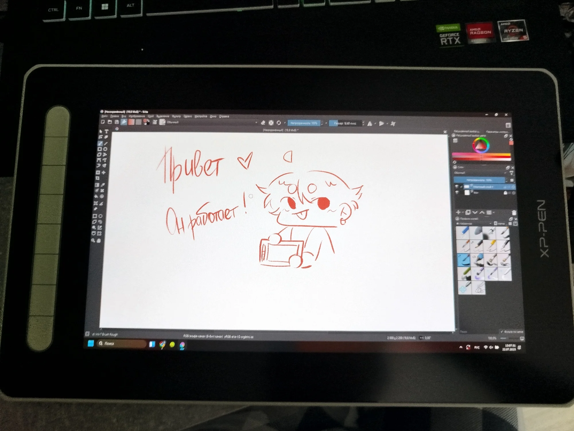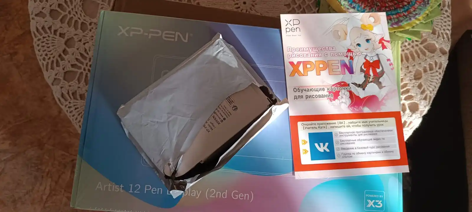 The tablet arrived in 5 days, tried drawing with it, feels much more pleasant than a tablet without a screen.