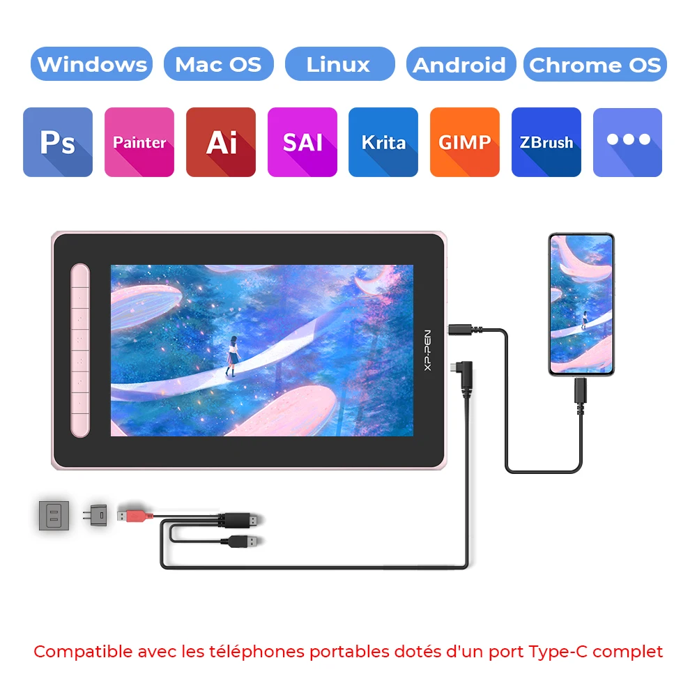 â—Please purchase a Full-featured USB-C cable together if you want to connect the pen display to the Android device,but please make sure your phone supports the DP protocol, otherwise, the function cannot work correctly even though you bought the cable.