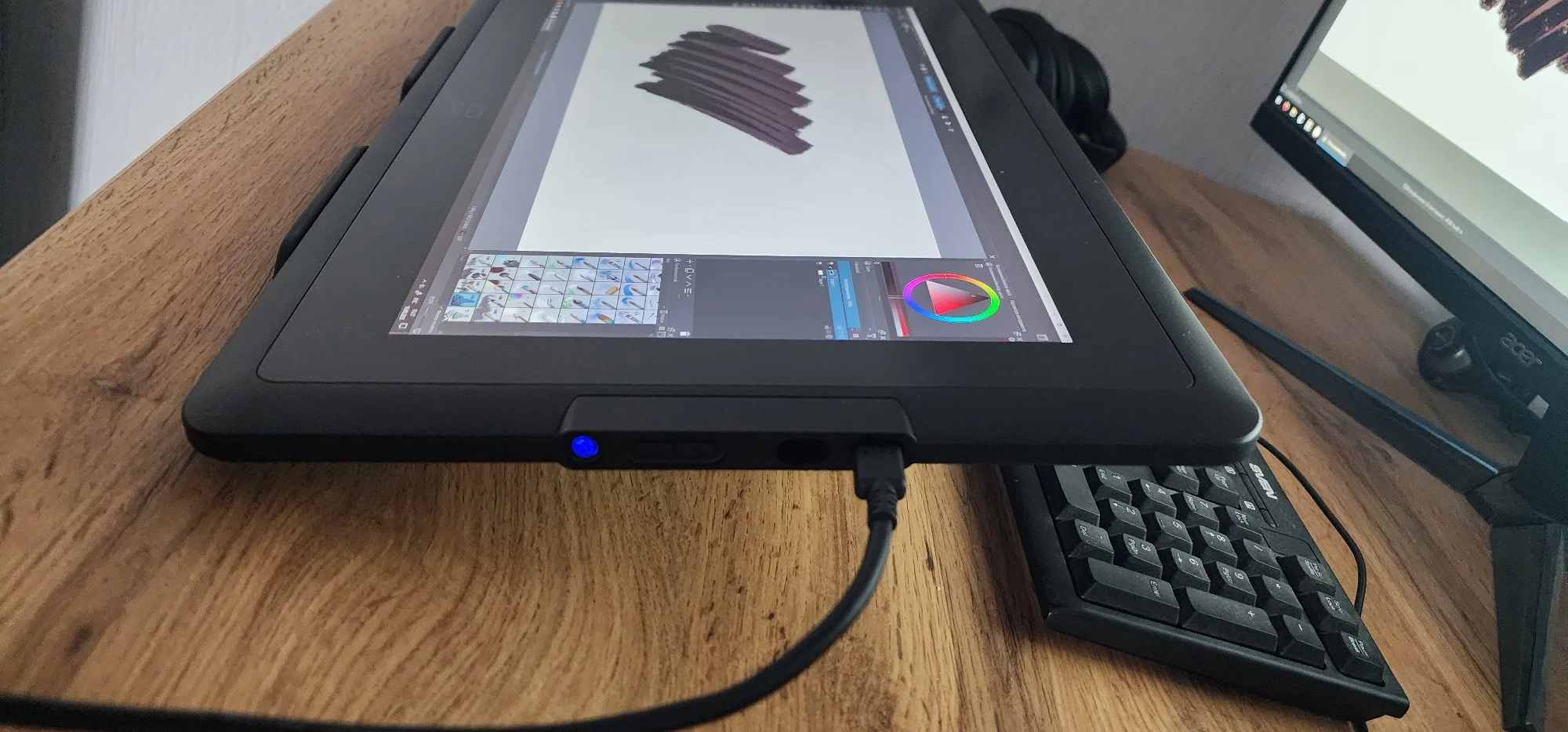 I managed to grab an express from Moscow during the discounts, expected it to arrive with the other gifts under the Christmas tree but it came much earlier. Packed securely, there’s nothing to complain about at all. I had to struggle a bit with the connection, but through HDMI+USB and the top USB-C port on the tablet itself, everything works. Very responsive in use. For me, as someone who previously only worked with a small blind person, drawing on a screen is a total head-scratcher. I squealed when I realized that at the other end of the stylus, the button is assigned for the eraser. Overall, everything is great!