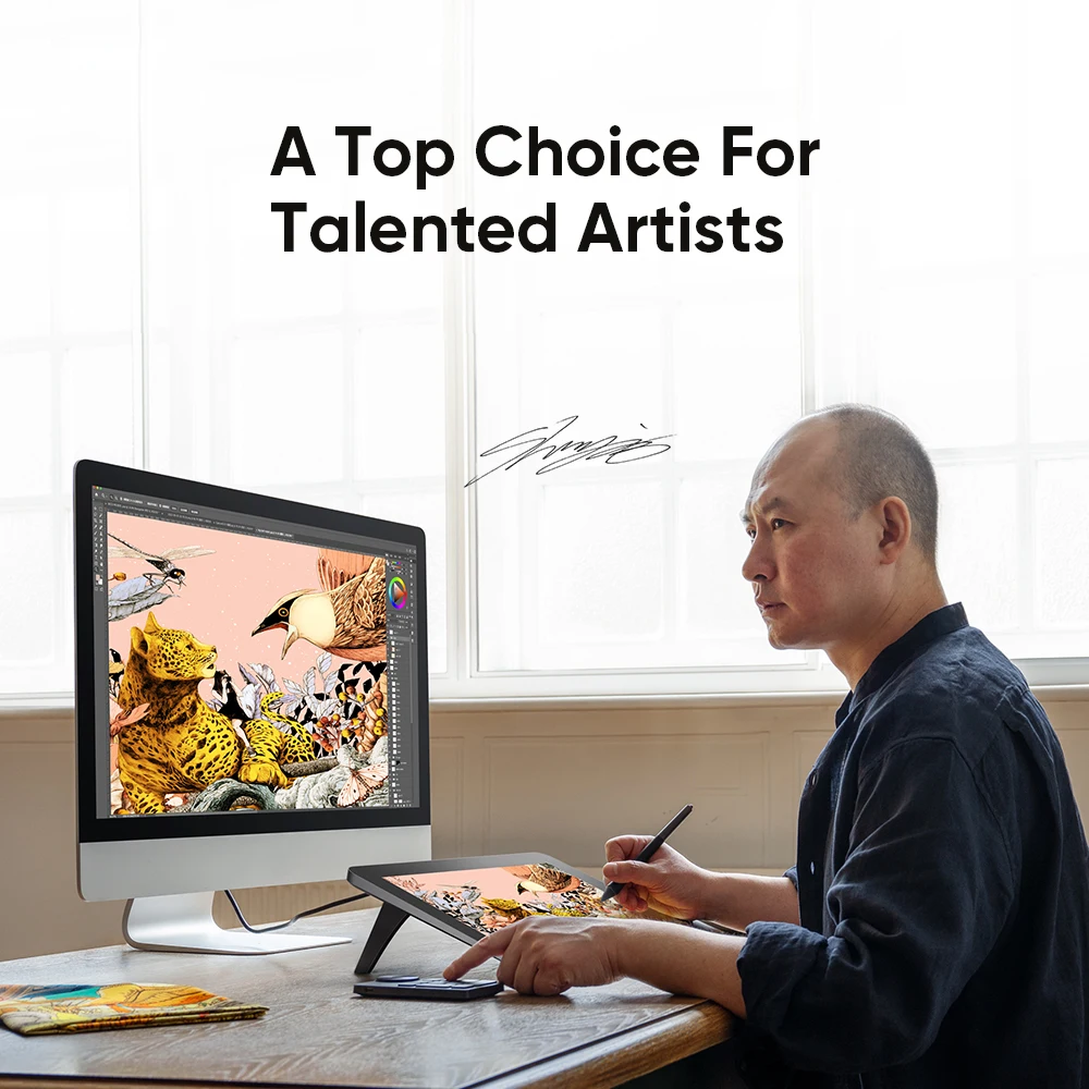 Compatible with Windows 7 (or later), macOS 10.10 (or later), Android (USB3.1 DP1.2), Chrome OS 88 (or later), and Linux. Support popular digital art software such as Adobe Photoshop, Illustrator, SAI, CDR, GIMP, Krita, MediBang, FireAlpaca, Toonboom, Maya, Blender3D, etc.