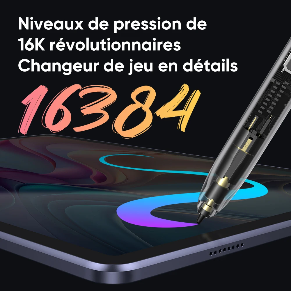 X3 Pro pencil is powered by a drawing-dedicated chip, 16K pressure levels and EMR technology. Free of charging and pairing, pick up to draw. Nimble nib & efficient shortcut key.