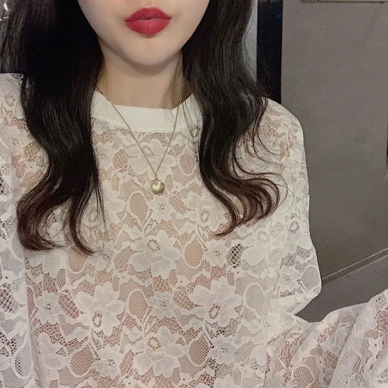 2 reviews for Xpqbb Korean Fashion Loose Lace Blouse Women All-match Sun Protection Hollow Out Shirts Female Summer Streetwear Smock Pullover