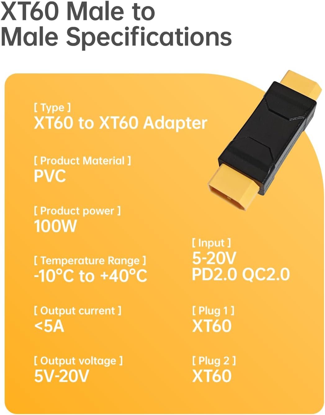 [WHAT YOU GET] 2 x XT60 male to male adapters. 1-year warranty, if you have any questions, please feel free to contact us.