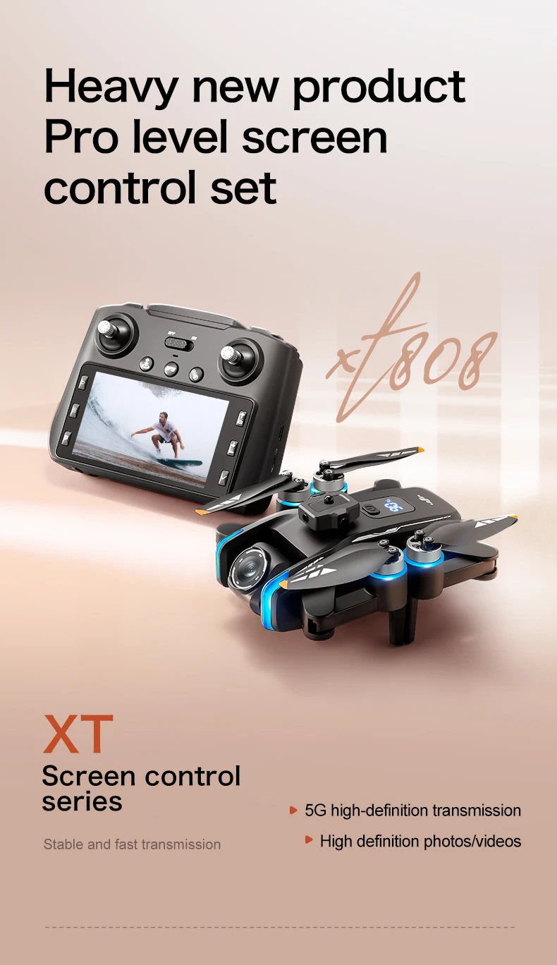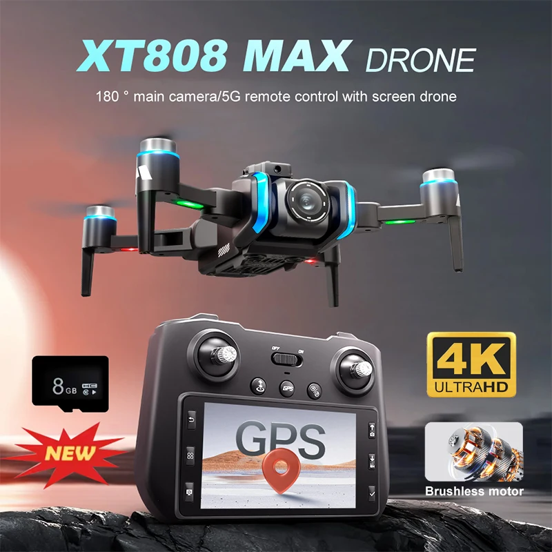 XT808 FPV Drone 4K HD Dual Camera LCD Touch Screen Remote Control Dron GPS Return 360° Obstacle Avoidance Brushless Quadcopter