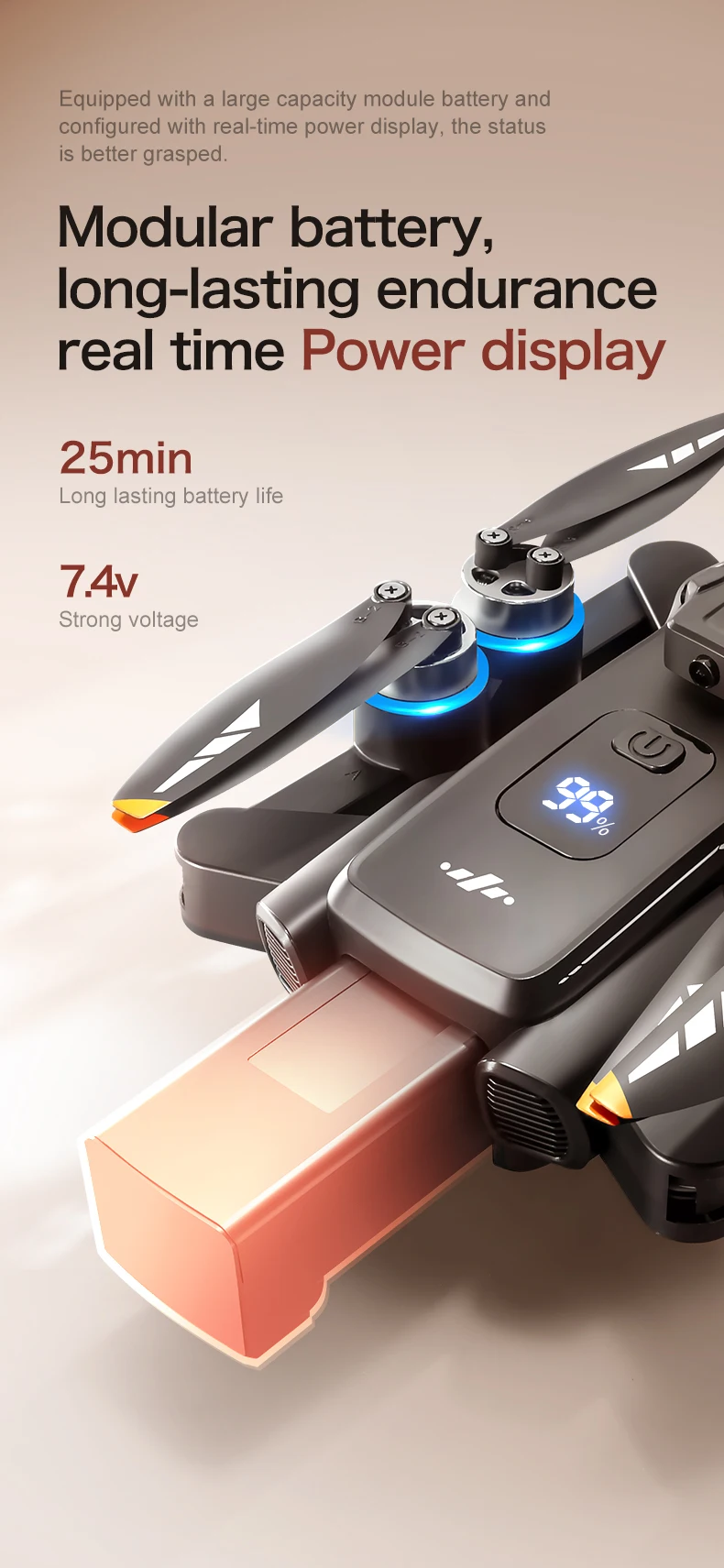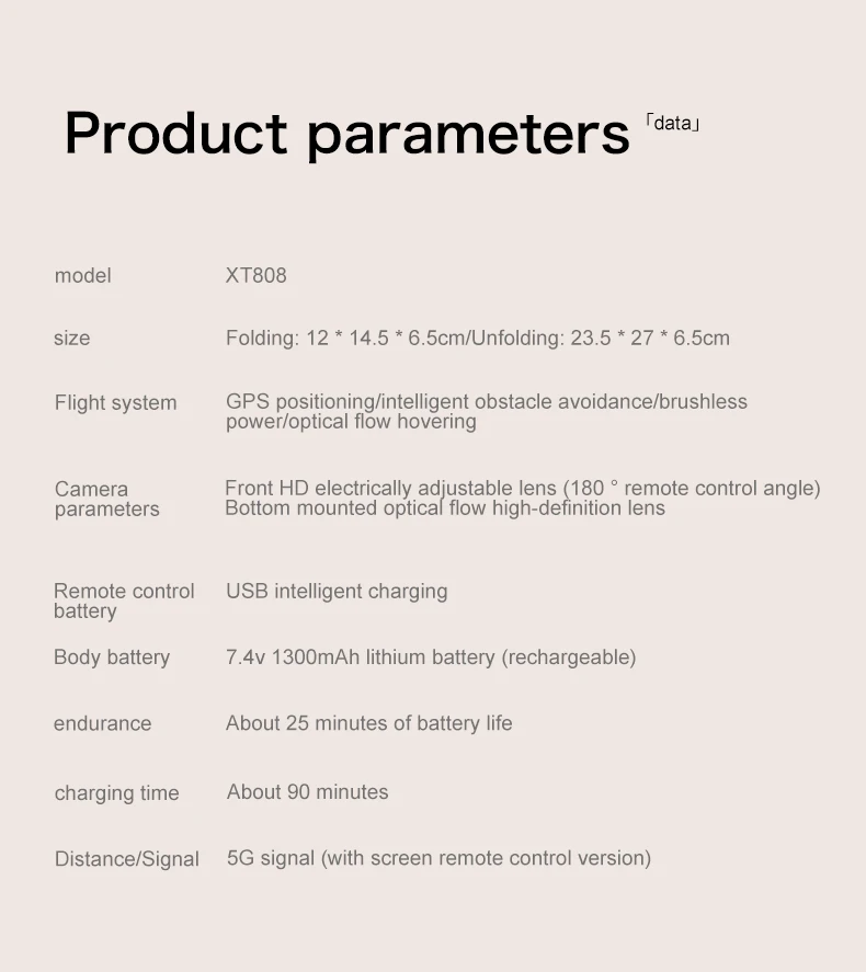 1. Wide-angle HD WIFI lens is placed on the front lens. The bottom HD lens has optical flow positioning. The servo head is designed to increase stability. EIS electronic image stabilization is added to make the photos clearer.