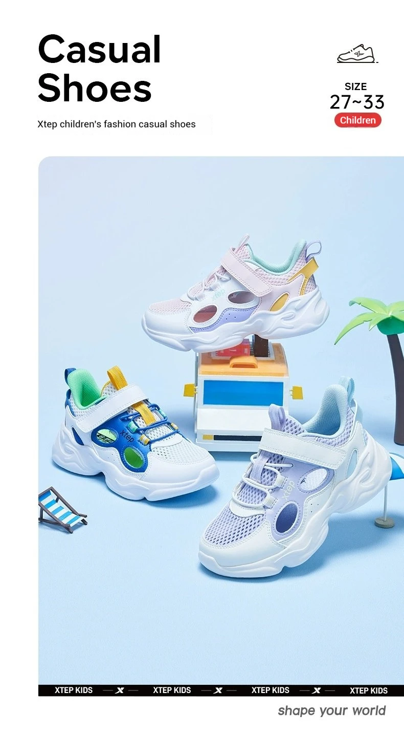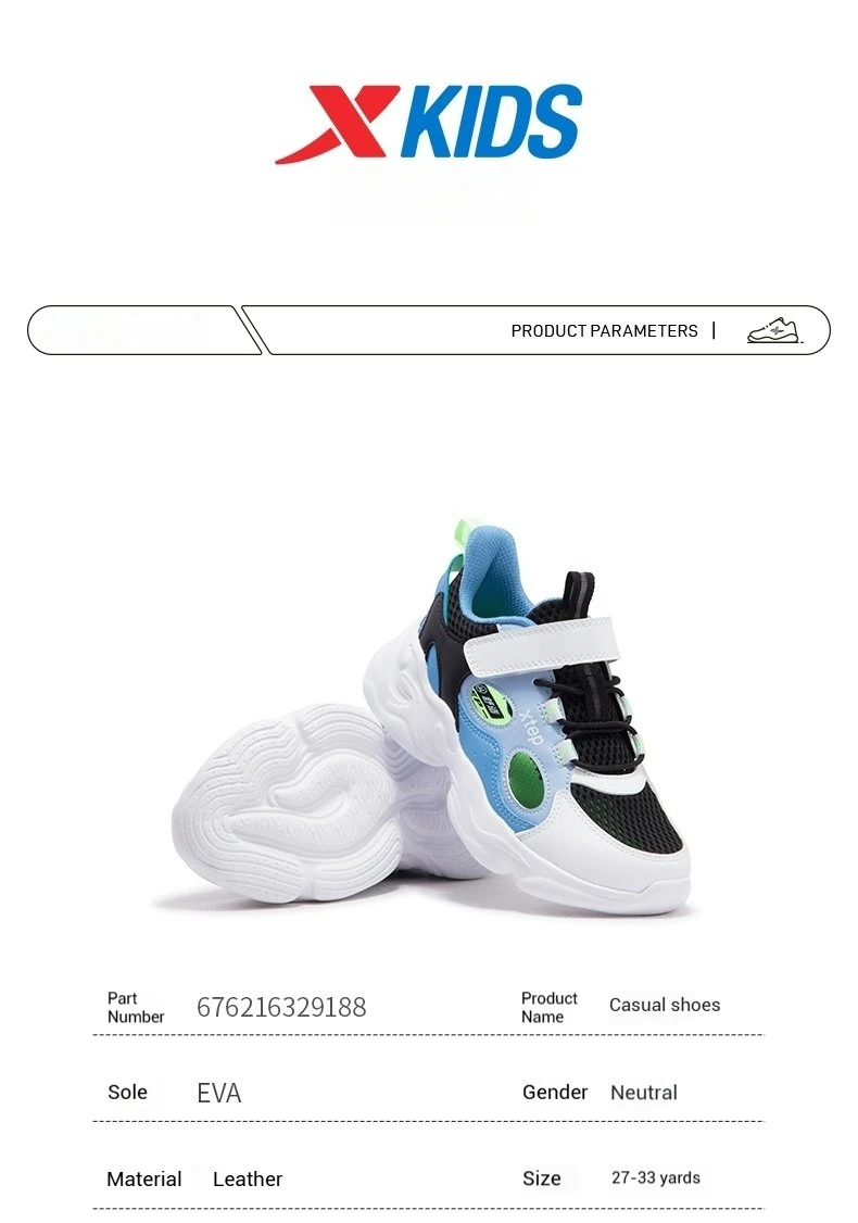 Xtep Boys And Girls Sports Shoes 2025 New Summer Durable Running Shoes Fashion Soft Sole Sneaker For Children 675216329188