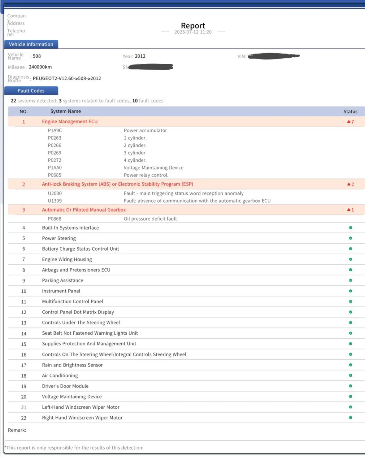 A30D diagnostic tool supports printing diagnostic reports