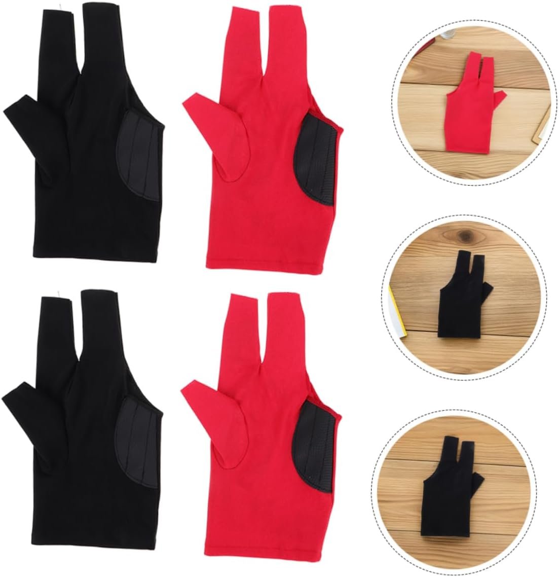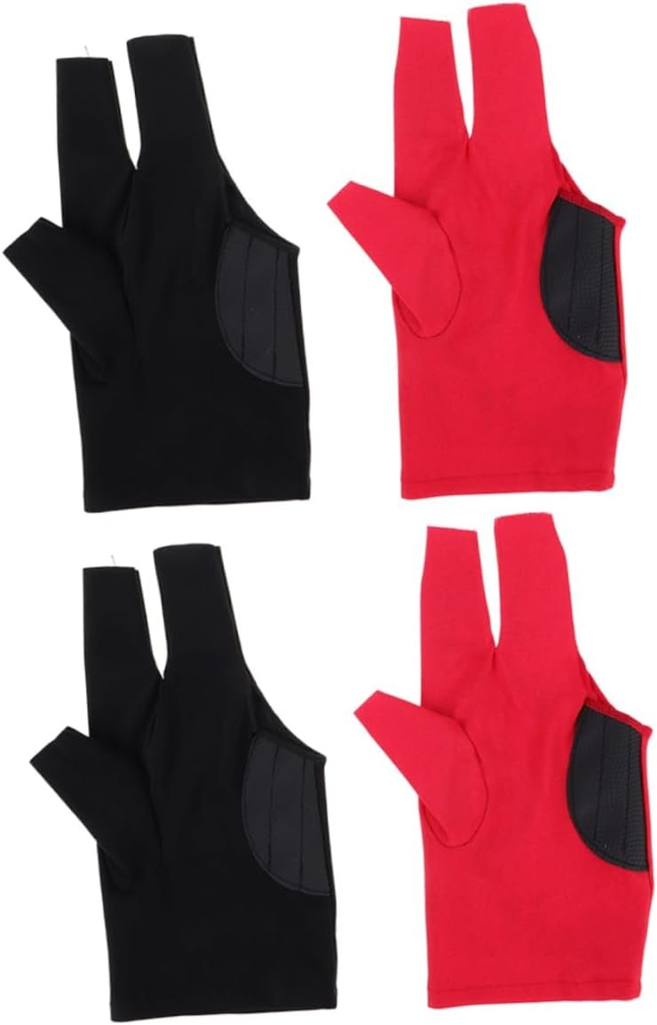 Yardwe 4pcs Billiard Gloves Unisex Three Finger Pool Stick Gloves Elastic Snooker Mitts for Left Hand Durable Design for Men Women for Pool Table Accessories