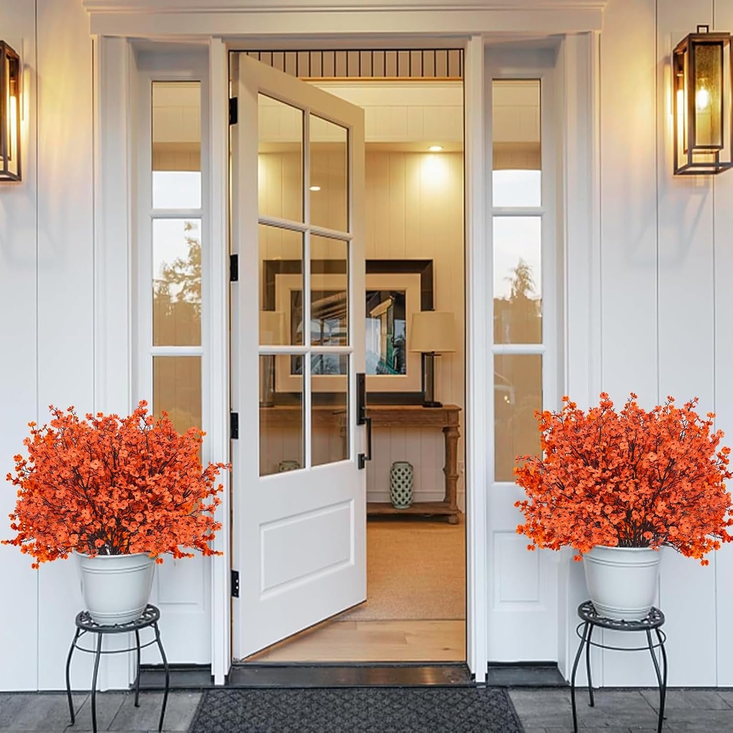 Beautiful Artificial Flowers: Pack of 5 pcs lush orange babys breath artificial flowers. The silk flowers blossoms with hundreds of tiny flowers, artfully creating dense bouquets that offer a gentle, refined enhancement to any floral composition or decorative niche.