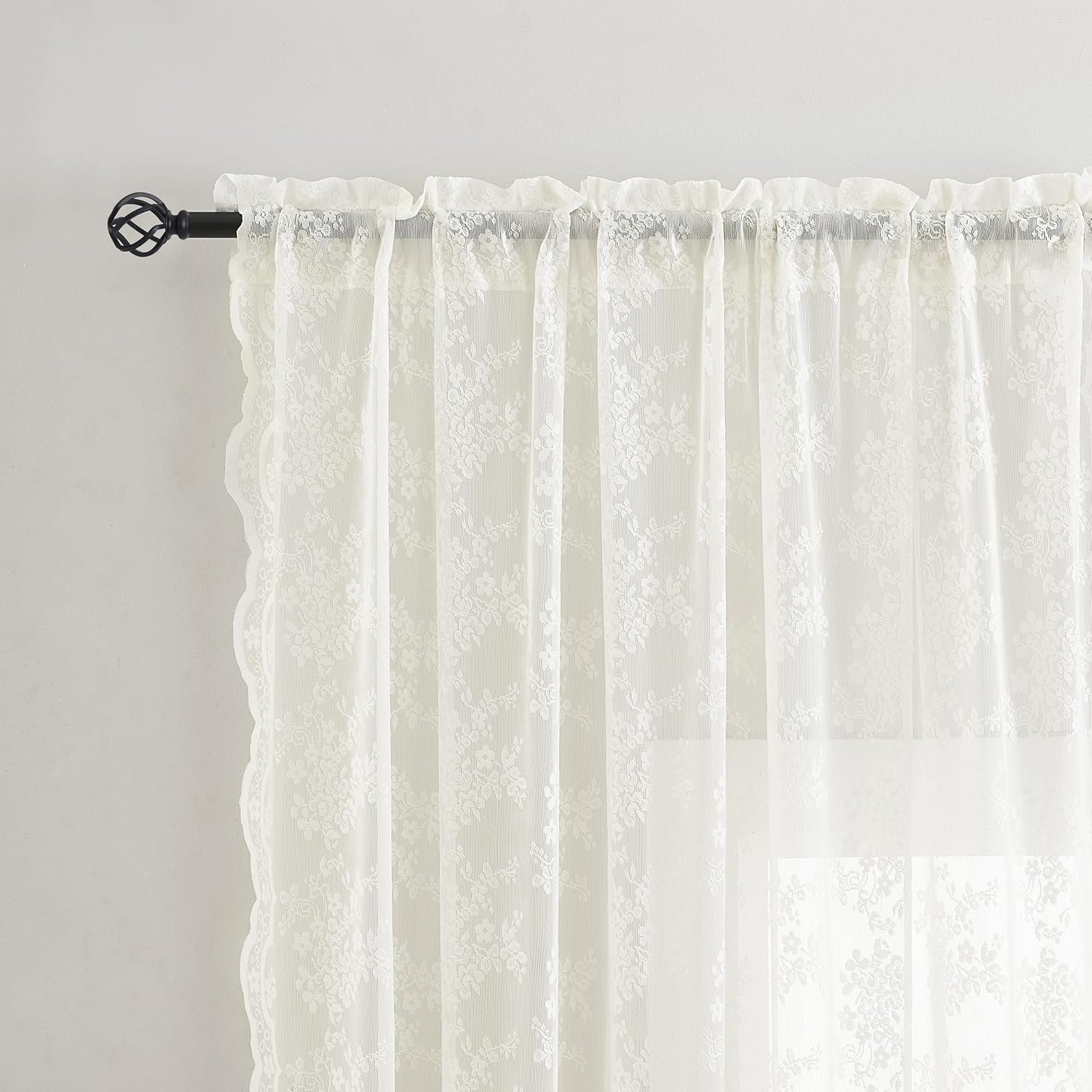 YJ YANJUN Sheer Lace Curtains for Bedroom Ivory Elegant Victorian Curtains Scalloped Edges Floral Kitchen Window Curtains 63 Inch Length Rod Pocket, 52 x 63 Inch, Ivory