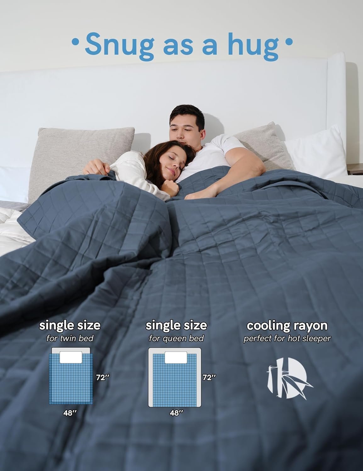 YnM Exclusive Cooling Weighted Blanket Rayon, Bed Blanket for One Person of 110lbs, Ideal for Twin/Full Bed (48×72 Inches, 12 Pounds, Blue Grey)
