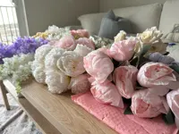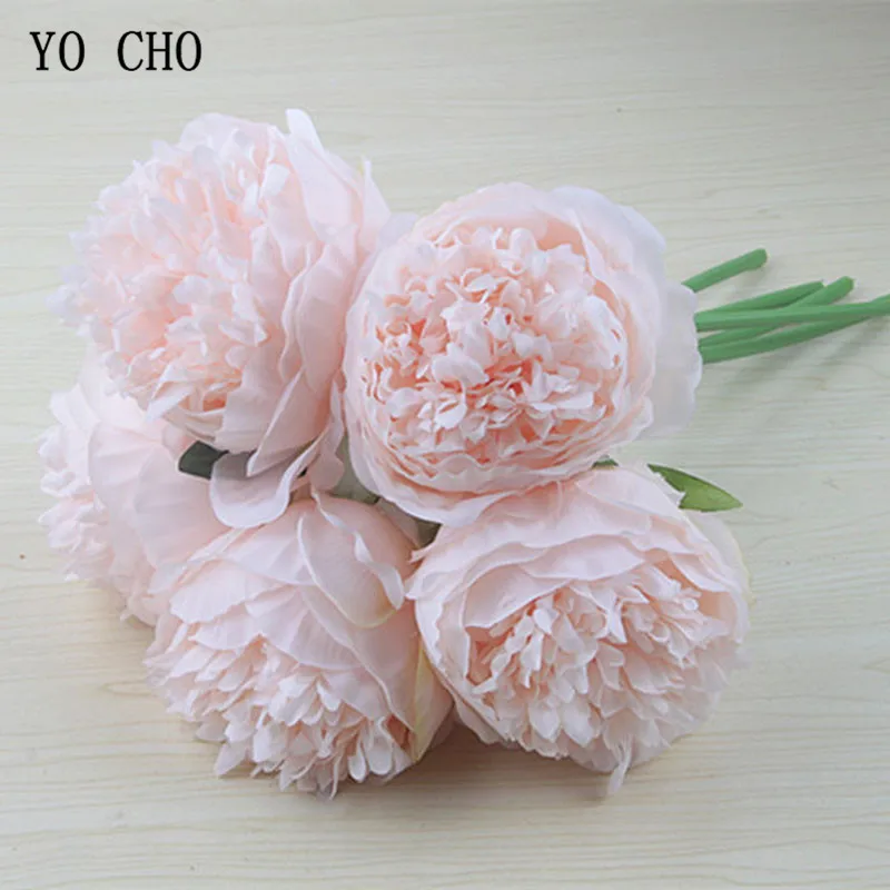 15 reviews for YO CHO 5pc Big Peony Artifcial Silk Flower Wedding Bouquet Decor White Peony Home Display Fake Flower Pack Heart Peony Pink Rose