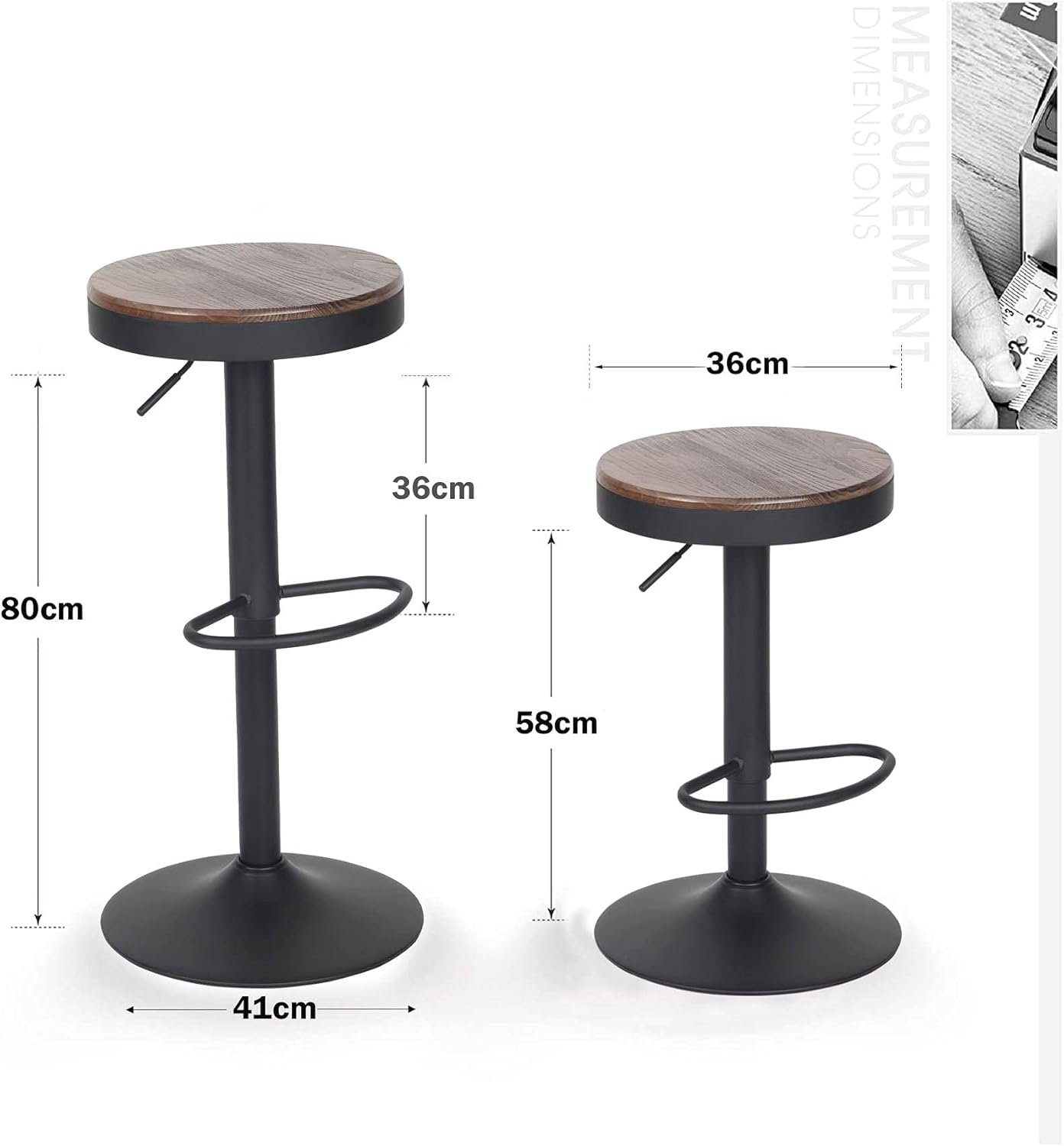 🌳 DURABLE AND STURDY: The combination of durable metal frame and high-quality elm wood makes this bar stool durable. The large base with a diameter of 38.5 cm ensures stability and can support 300 lbs.