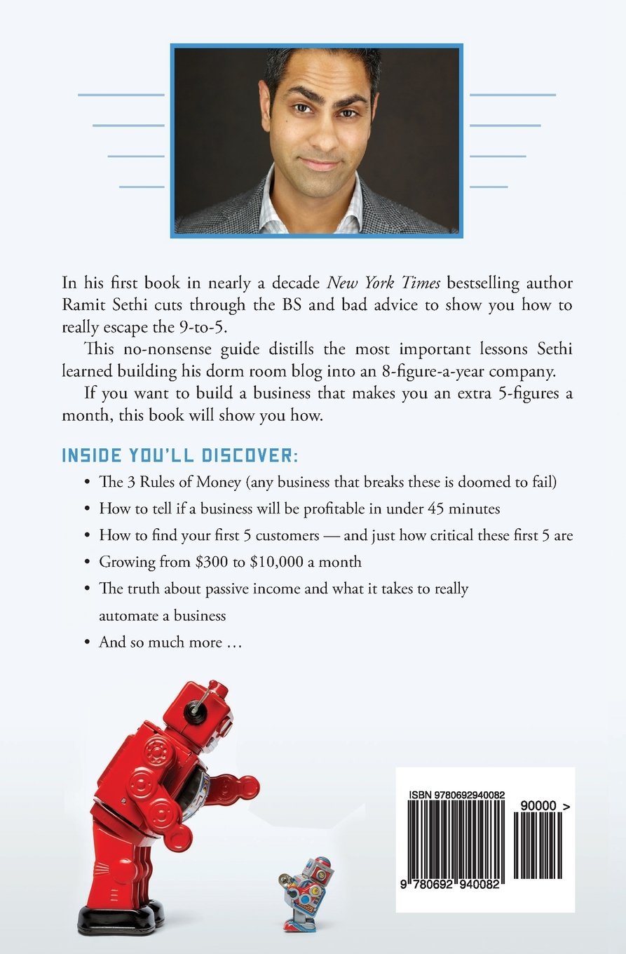 In his first book in nearly a decade, New York Times bestselling author Ramit Sethi cuts through the BS and bad advice to show you how to really escape the 9-to-5. This no-nonsense guide distills the most important lessons Sethi learned building his dorm room blog into an 8-figure-a-year company. If you want to build a business that makes you an extra 5-figures a month, this book will show you how. Inside you’ll discover: The 3 Rules of Money (any business that breaks these is doomed to fail)How to tell if a business will profitable in under 45 minutesHow to find your first 5 customers — and just how critical these first 5 areGrowing from $300 to $10,000 a monthThe truth about passive income and what it takes to really automate a businessAnd so much more…