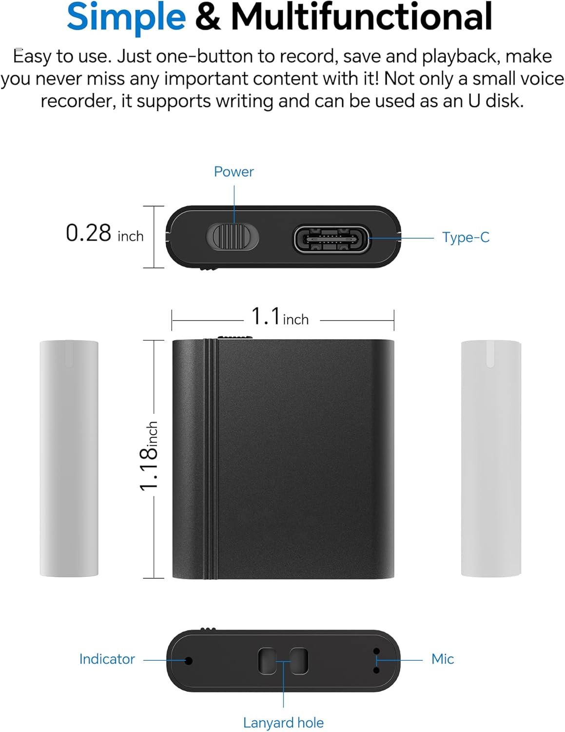 【Simple & Multifunctional】Easy to use. Just one-button to record, save and playback, make you never miss any important content with it! Not only a small voice recorder, it supports writing and can be used as an U disk.