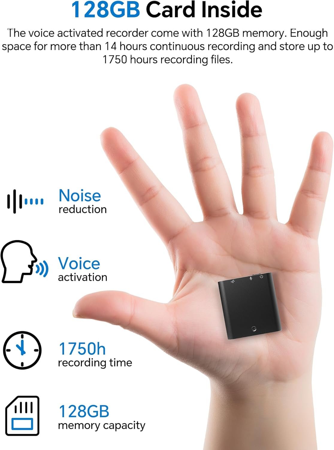 【128GB Memory & Long-Lasting Battery】The YVN voice activated recorder come with 128GB memory. Enough space for more than 14 hours continuous recording and store up to 1750 hours recording files.Each of our digital voice recorders is small, portable and extremely lightweight! Therefore, it can be put into your pocket, bag or briefcase and taken everywhere to record audio conversations for interviews, meetings, lectures, and more!