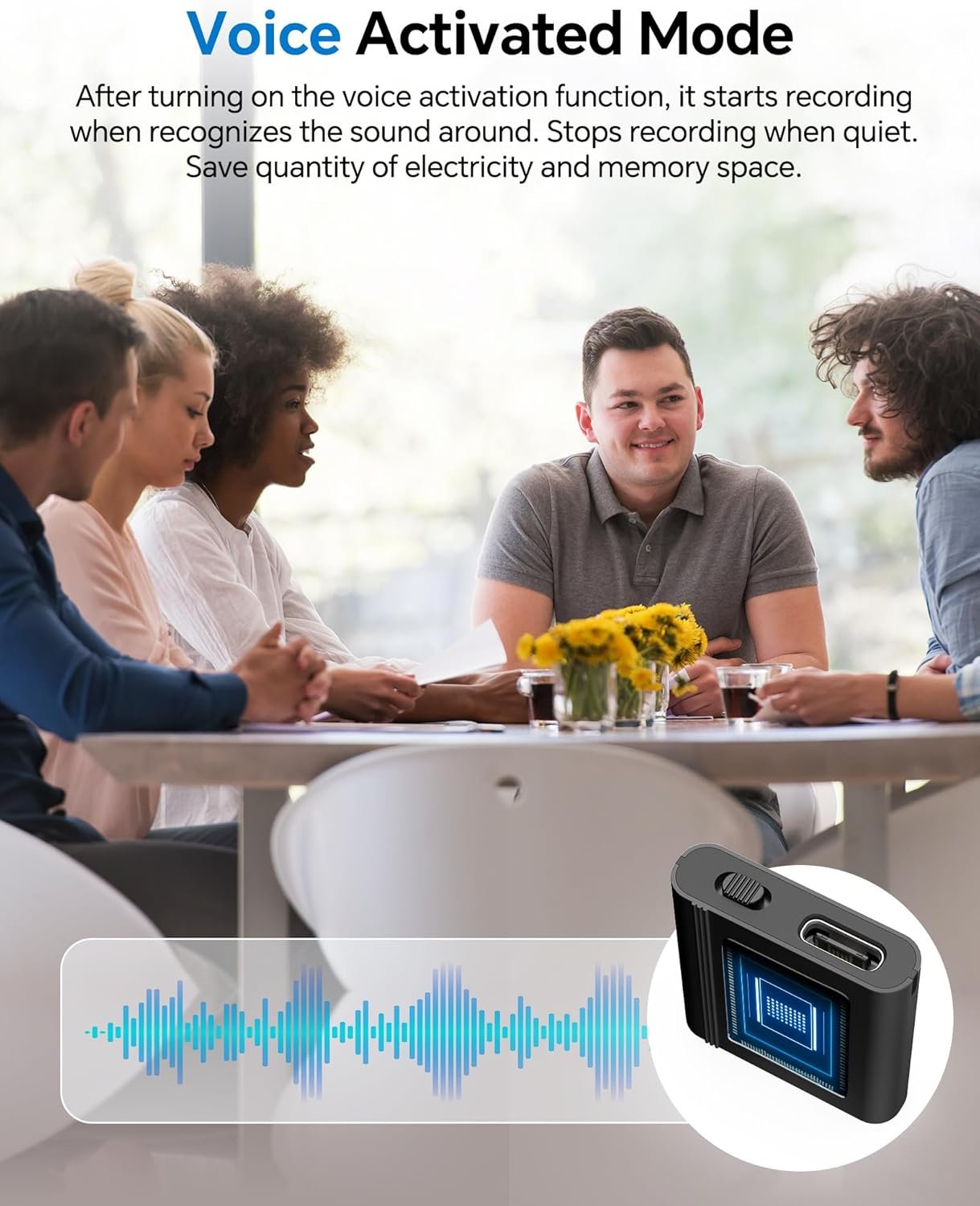 【Voice Activated Mode】After turning on the voice activation function, it starts recording when recognizes the sound around. Stops recording when quiet. Save quantity of electricity and memory space.has data protection function, automatically save when the battery power is low!!!