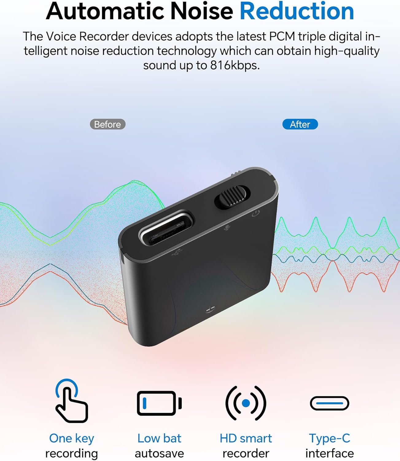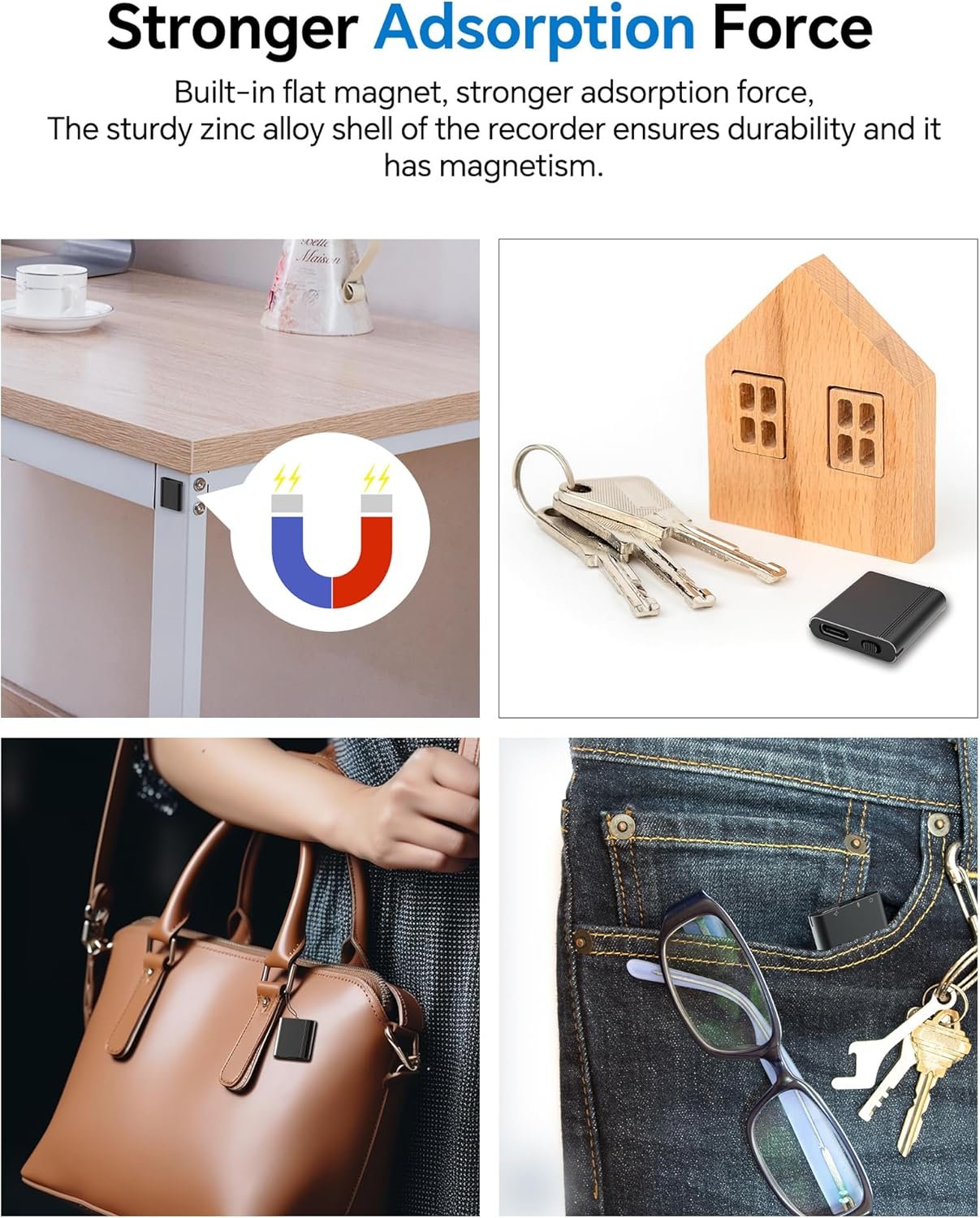 【Automatic Noise Reduction & HD Recording】The Voice Recorder devices adopts the latest triple digital intelligent noise reduction technology which can obtain high-quality sound up to 816kbps. Equipped with omnidirectional stereo microphone which can capture farther/lower but clearer sound. The sturdy zinc alloy shell of the recorder ensures durability and it has magnetism.