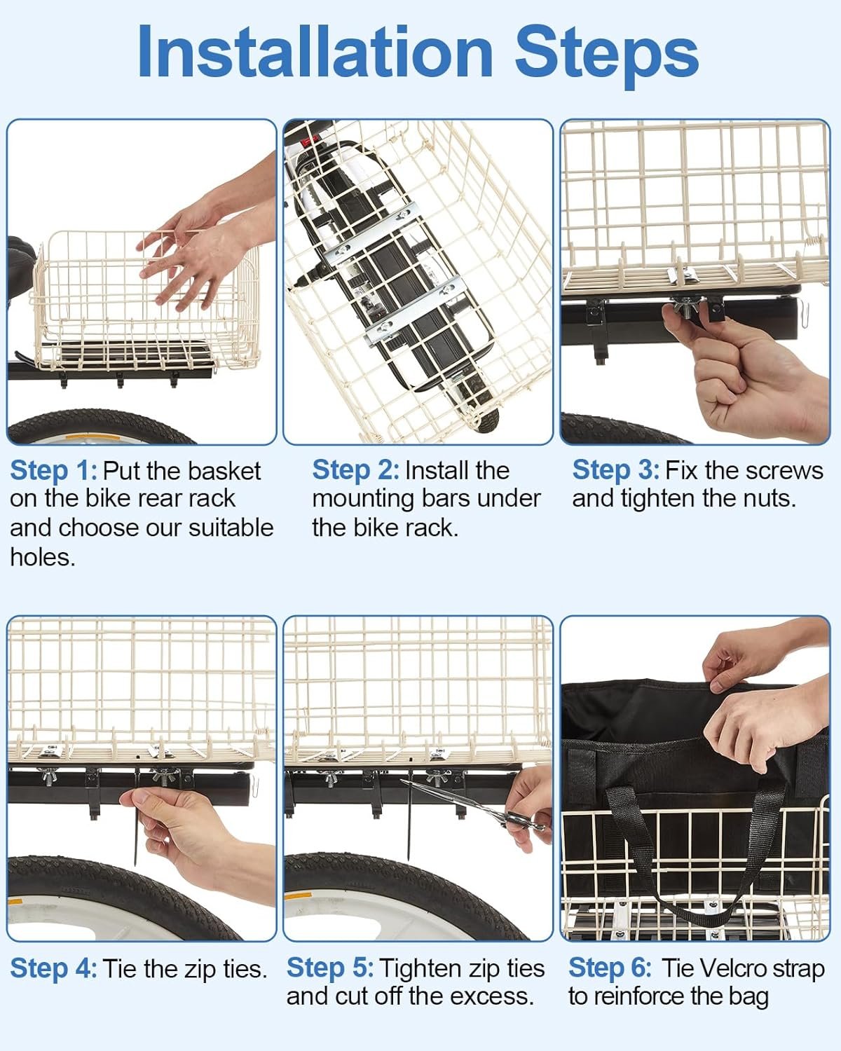 Large Capacity: Bicycle baskets for adult bikes have dimensions of 13 x 7.8 x 8.6 inches and can support a weight of up to 44 lbs. It is ideal for carrying backpacks, groceries, small to medium-sized pets, or serving as a delivery bike basket