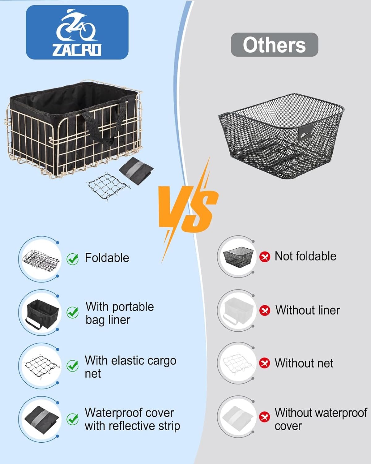Heavy Duty Material: Zacro bicycle front basket is made of high-quality metal wire (>3mm thick) for deformation resistance & stable load-bearing. It is also rust-resistant coated, enhancing strength, durability, and corrosion prevention