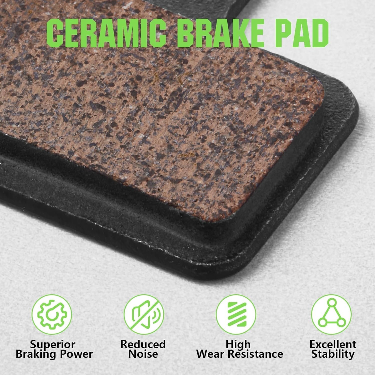 【Premium Ceramic Material】Zacro electric e bike disk brake pads are made of premium ceramic material, which could provided maximum initial bite for stronger braking performance, wear resistance and less noise than resin bike brake pads