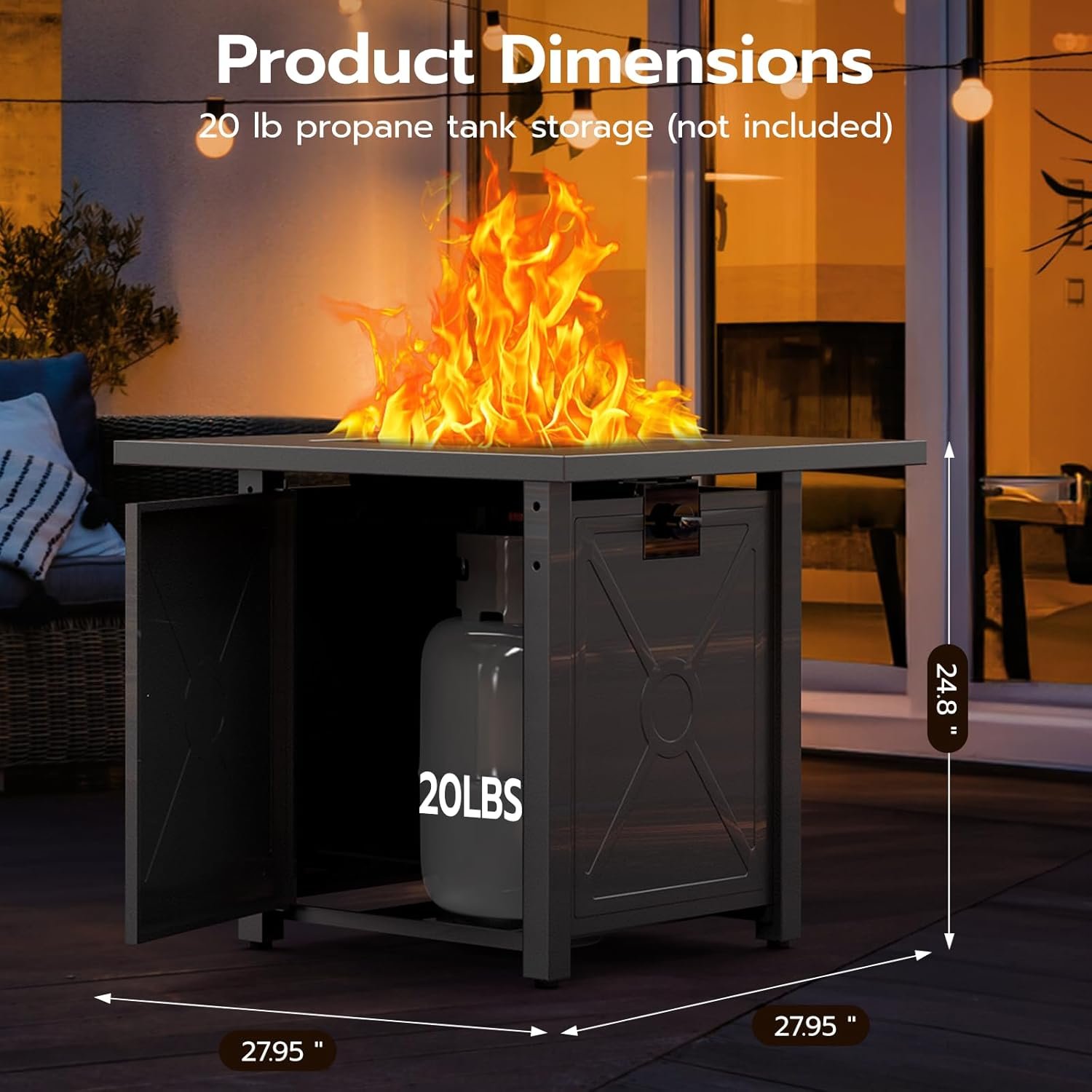 【40,000 BTU Heat Output】With a heat output of up to 40000 BTU, the Zafro fire Table has the ability of providing you with enough warmth to dispel the cold around you.The dimensions of the gas fire pit table are 27.95 x 27.95 x 24.8 inches, with a net weight of 48.5 lbs, making it an ideal addition to any outdoor space such as backyards, courtyards, terraces and gardens.